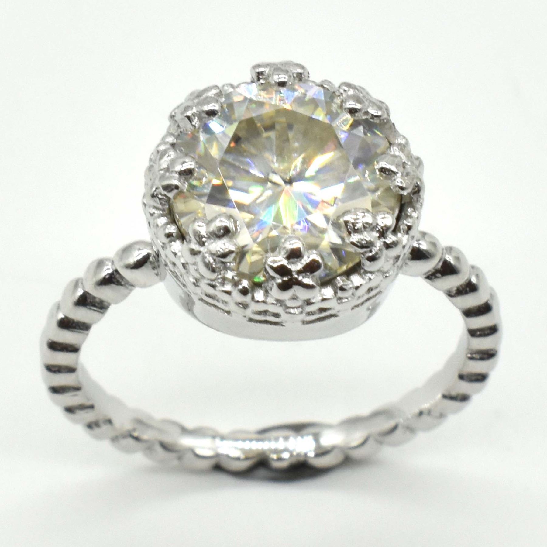 SILVER MOISSANITE(ROUND 10 MM)(3.85CT) RHODIUM PLATED TEST AND LOOKS BETTER THAN DIAMOND (US 7) RING (~WEIGHT 3.85G)