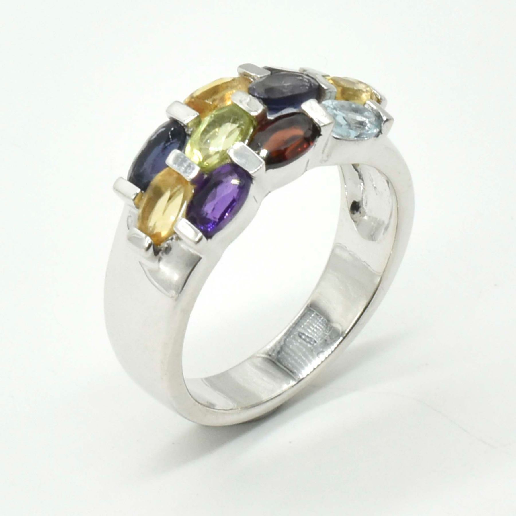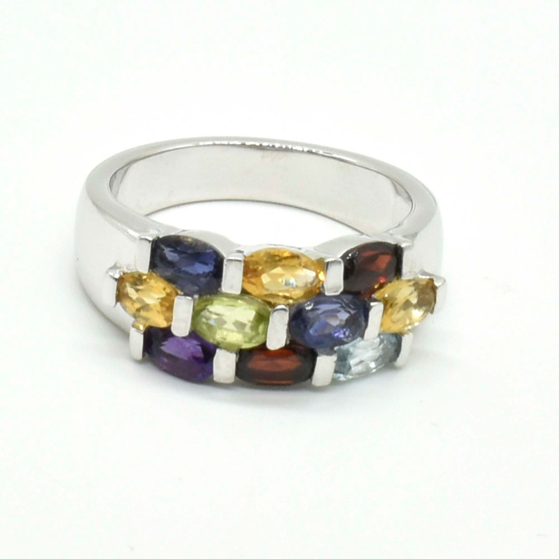SILVER MULTI COLOUR GEMSTONE (1.9CT) RING SIZE 7.5