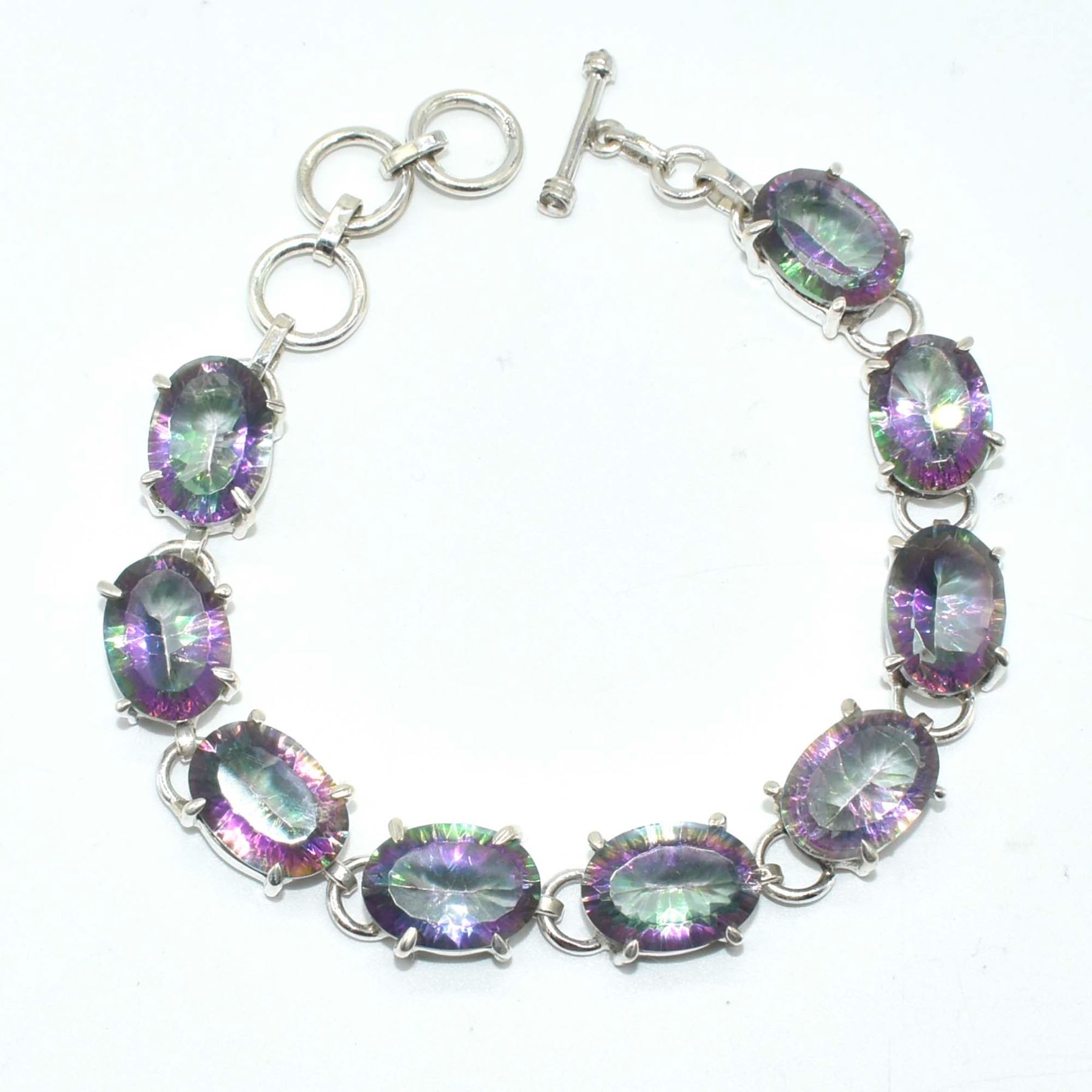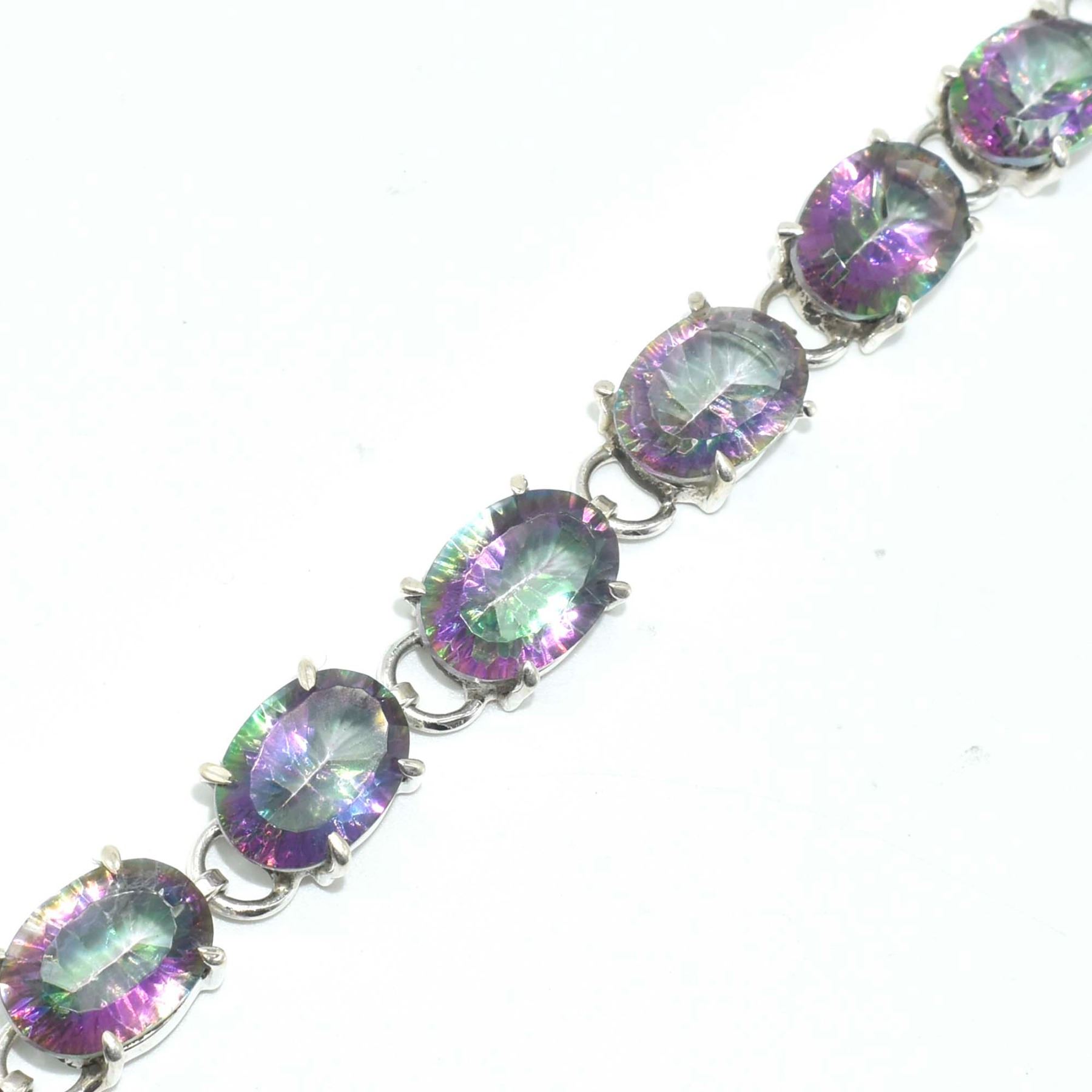 SILVER MYSTIC QUARTZ(54.9CT) HAND MADE BRACELET (~LENGTH 7.5INCHES) (~WEIGHT 23.65G)