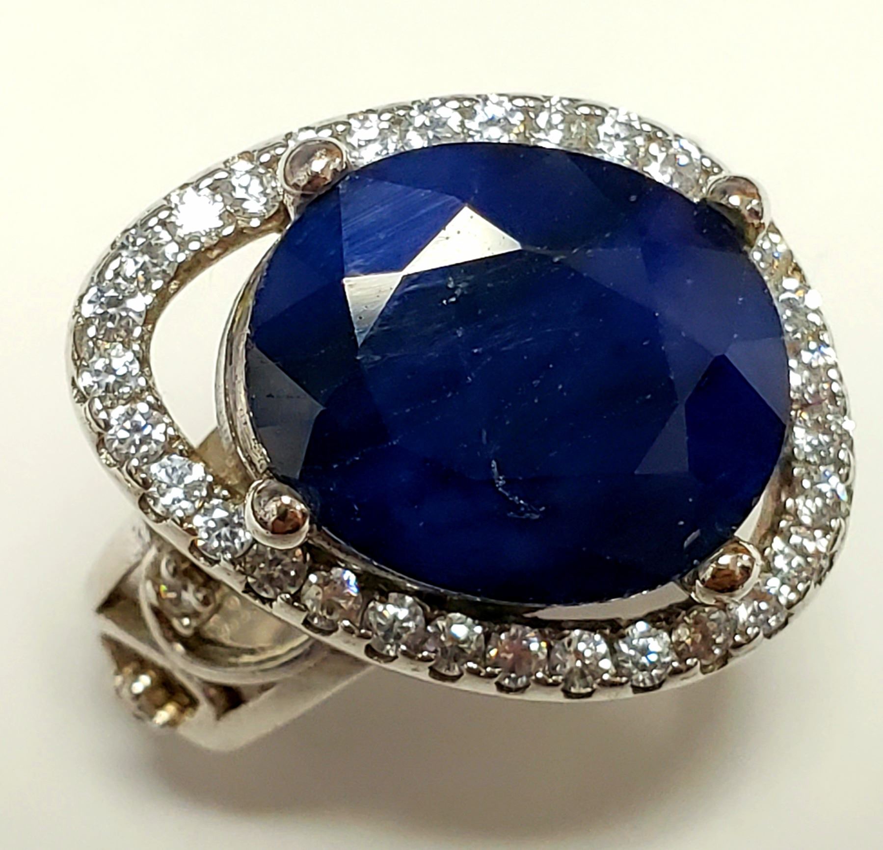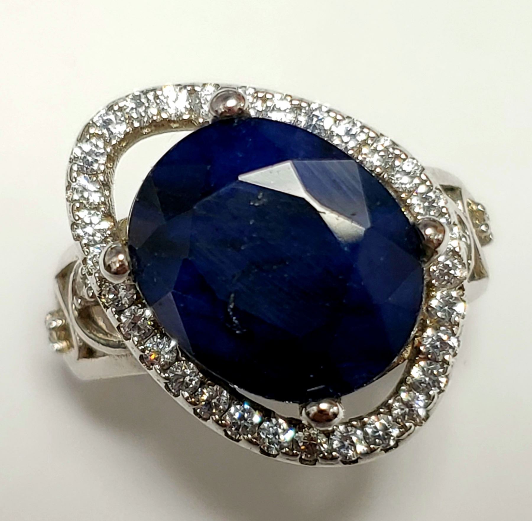 SILVER NATURAL BIG SAPPHIRE (5+CT) RING