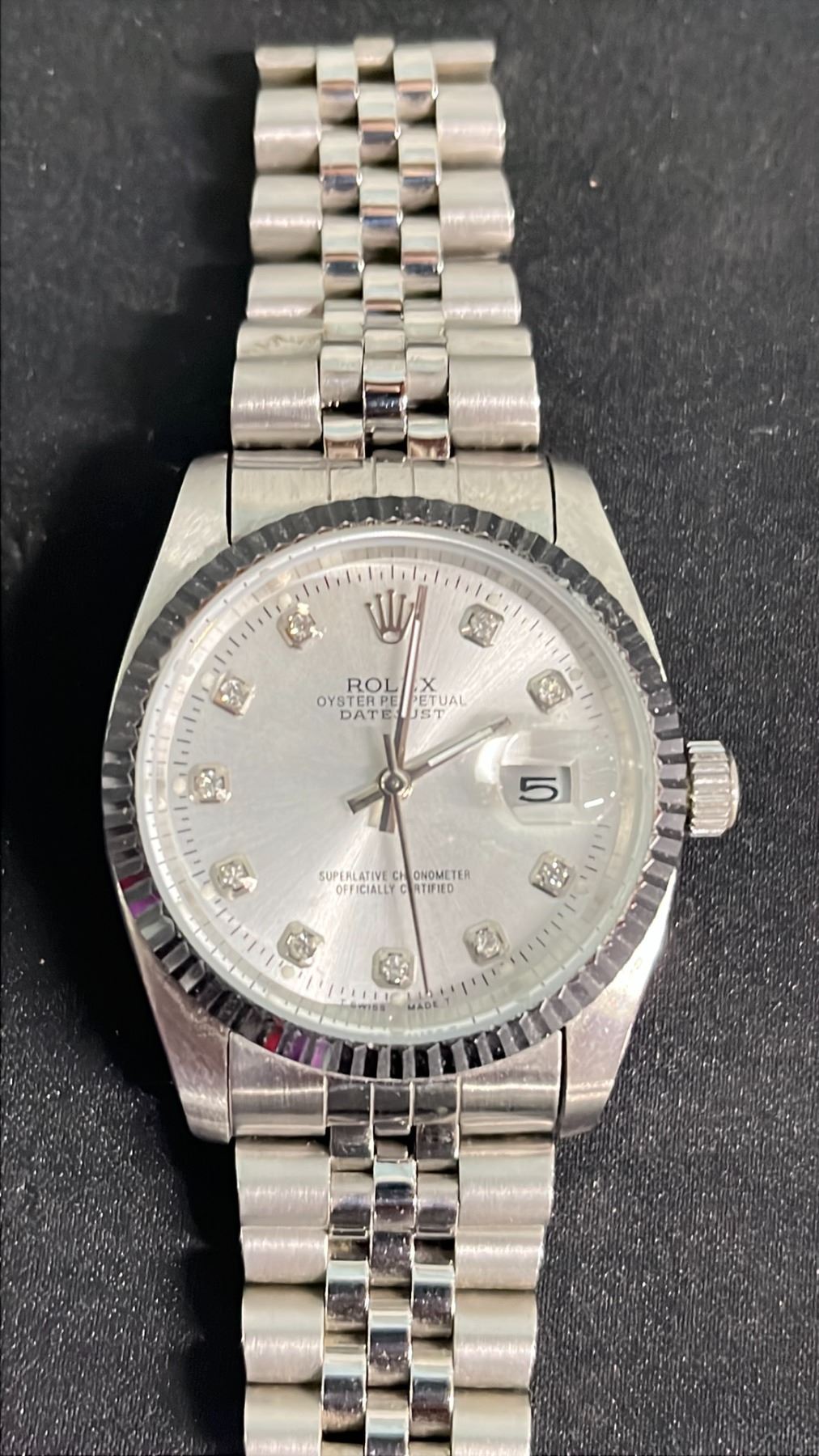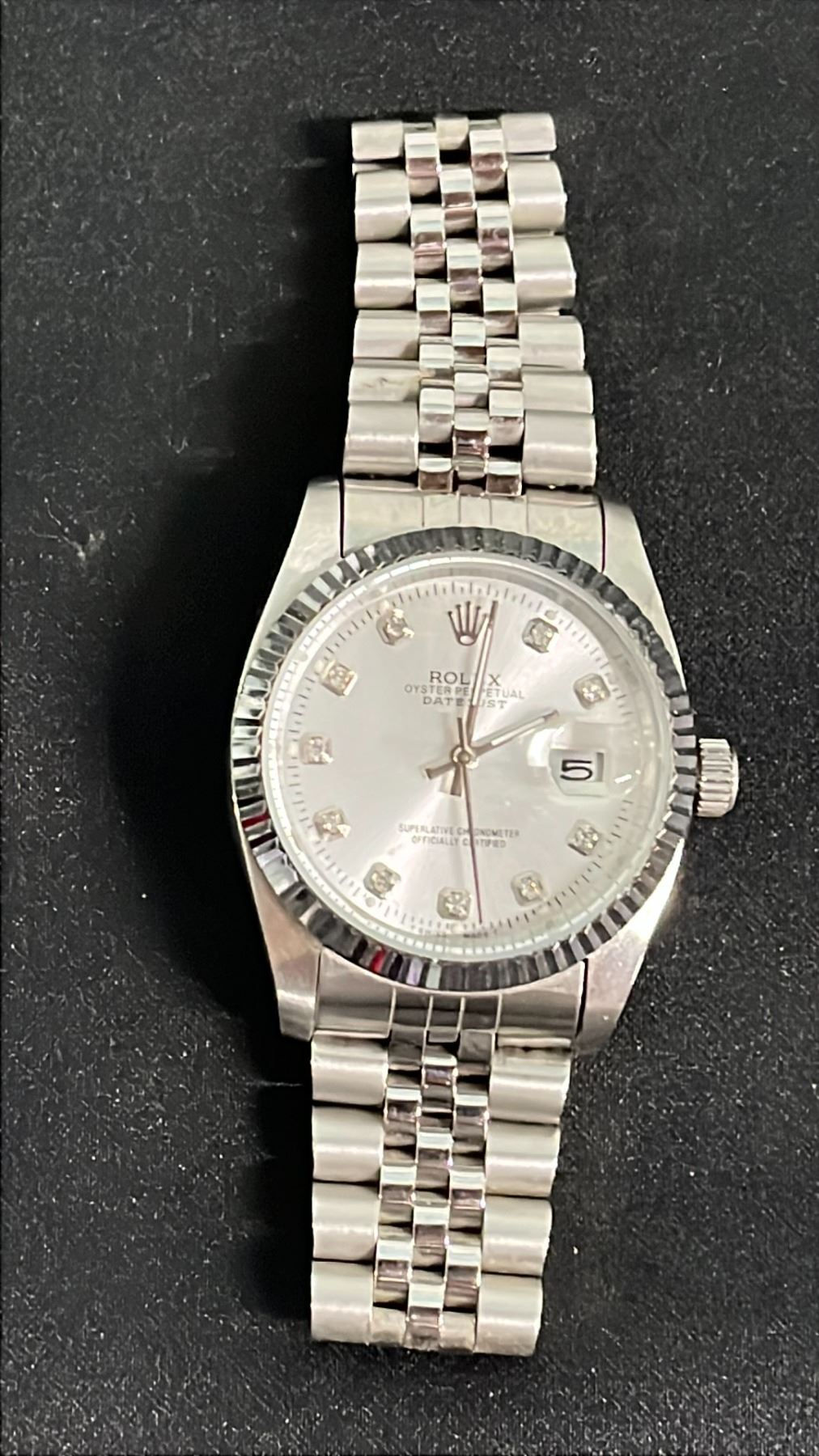 SILVER ONE-TONE ROLEX OYSTER PERPETUAL DATEJUST WATCH W/ DIAMOND MARKERS - *REPLICA* REFERENCE # 116264
