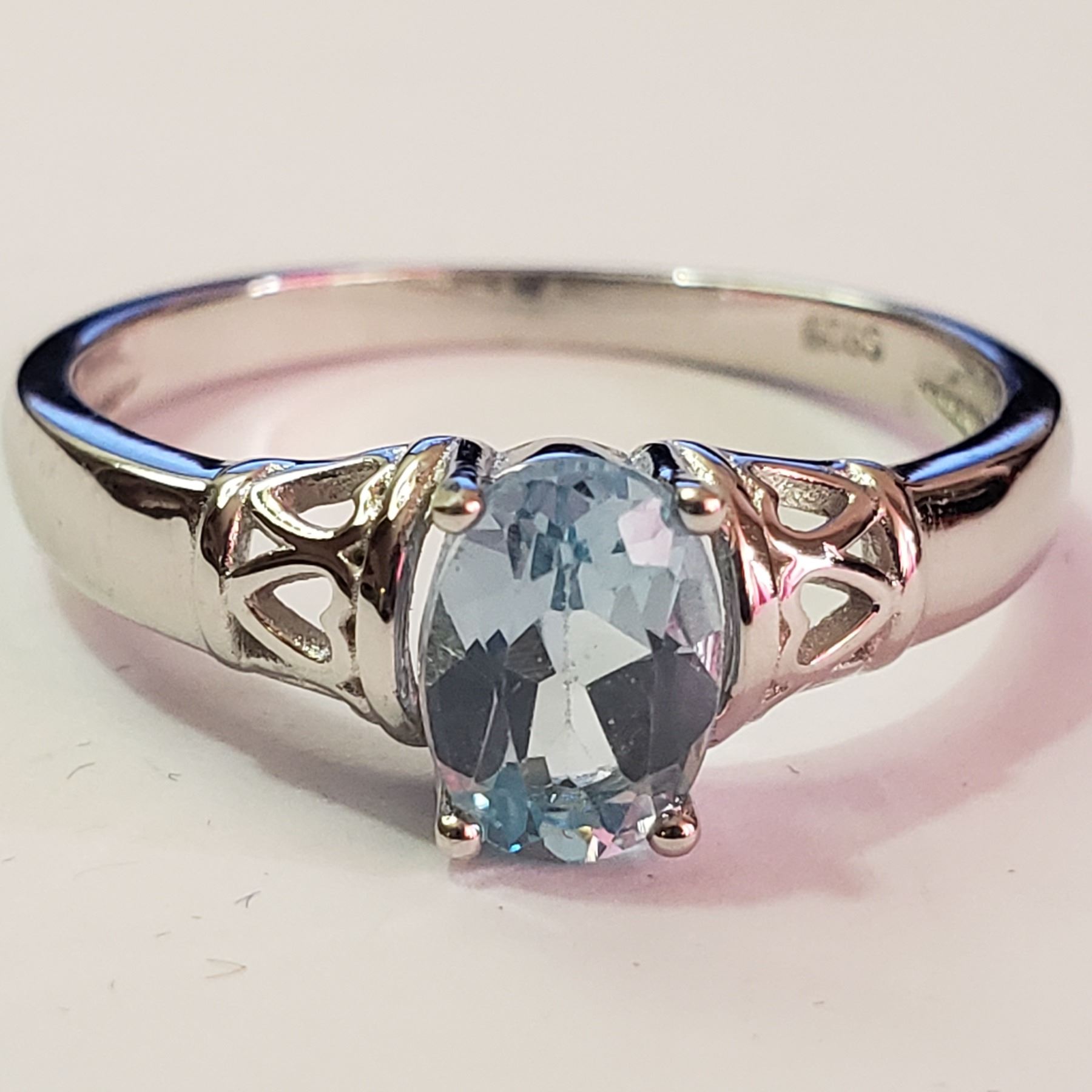 SILVER RHODIUM PLATED BLUE TOPAZ(1CT) RING (SIZE 7)