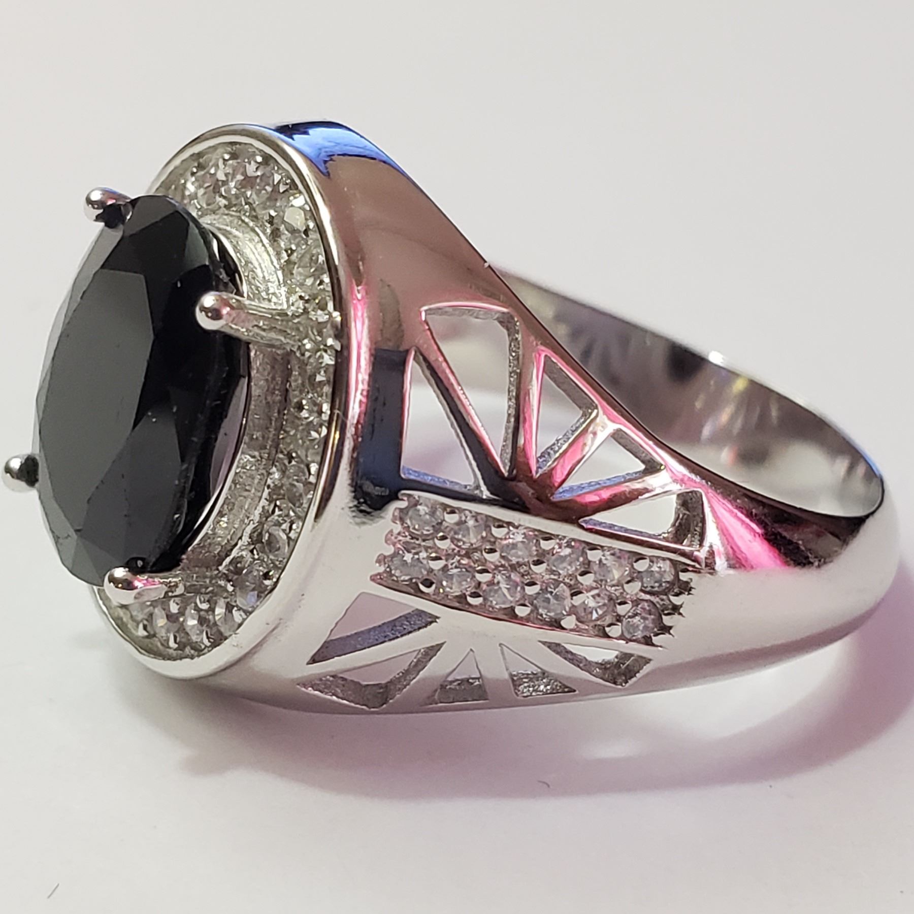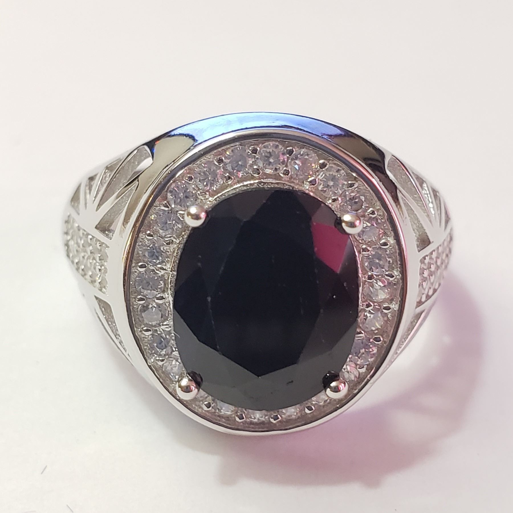 SILVER RHODIUM PLATED SAPPHIRE RING (~SIZE 10) (~WEIGHT 6.62G)