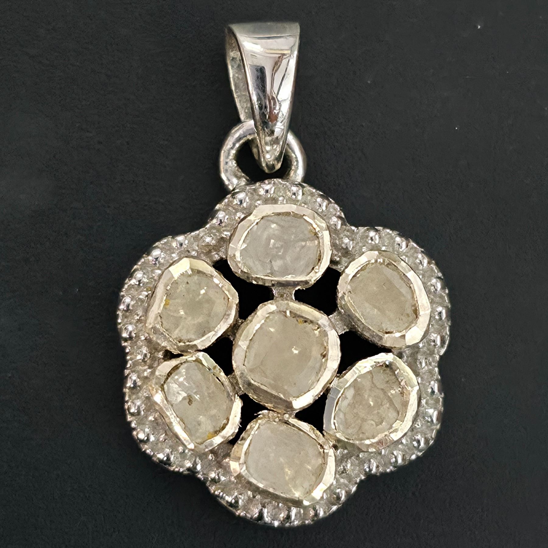 SILVER ROSE CUT DIAMOND(0.45CT) RHODIUM PLATED PENDANT (~WEIGHT 2.65G)