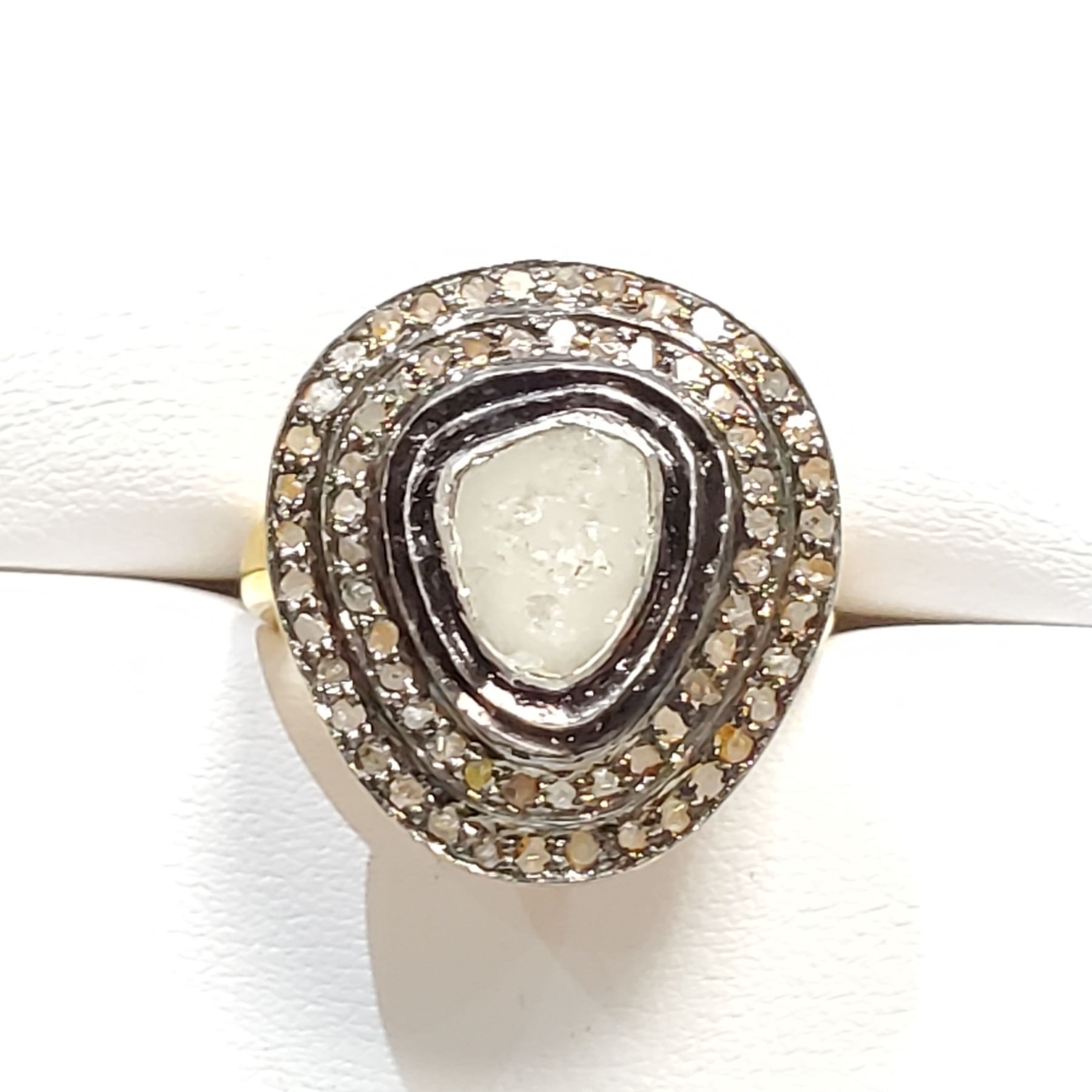 SILVER ROSE CUT DIAMOND RING SIZE 7.5