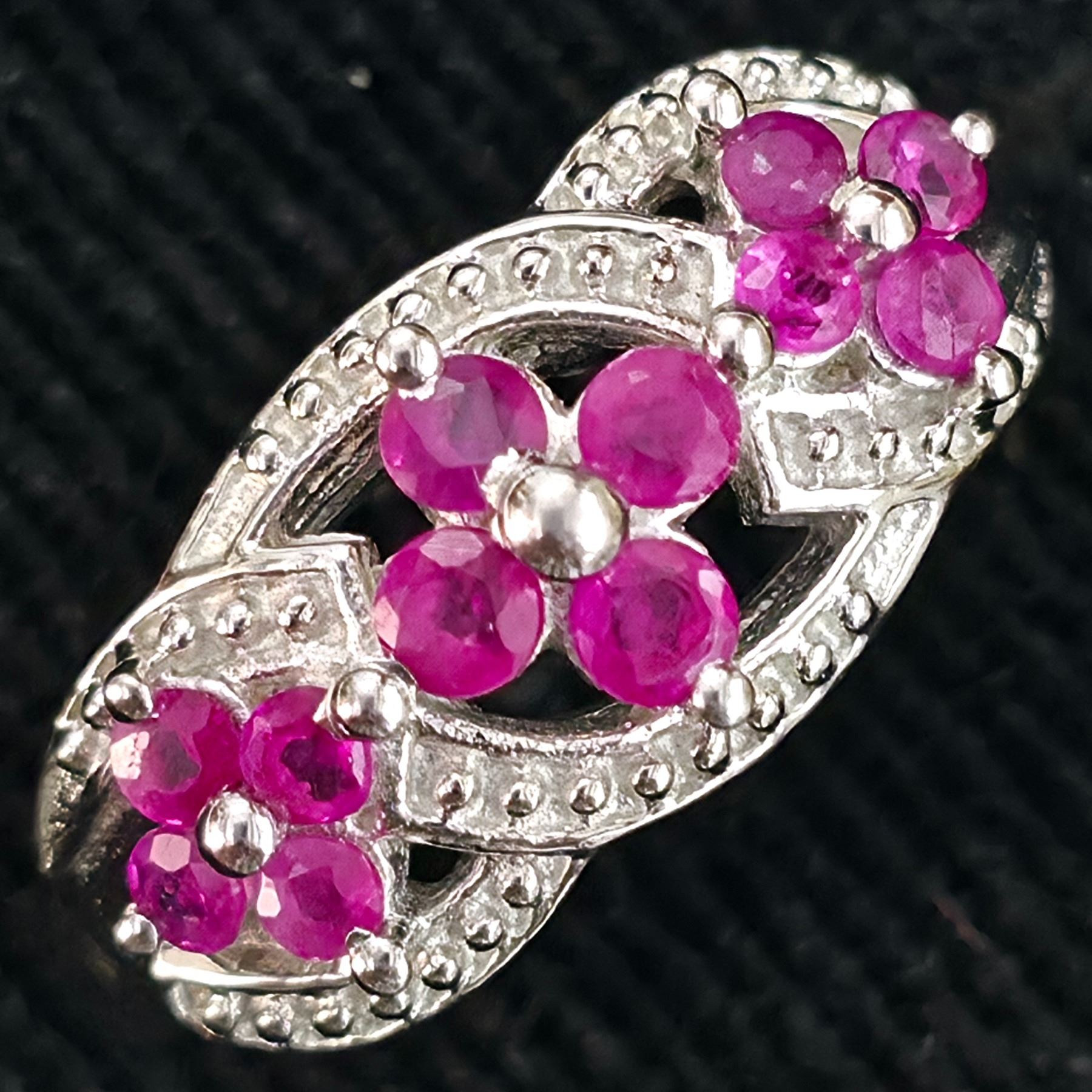 SILVER RUBY(0.3CT) RHODIUM PLATED RING (~WEIGHT 3.7G)