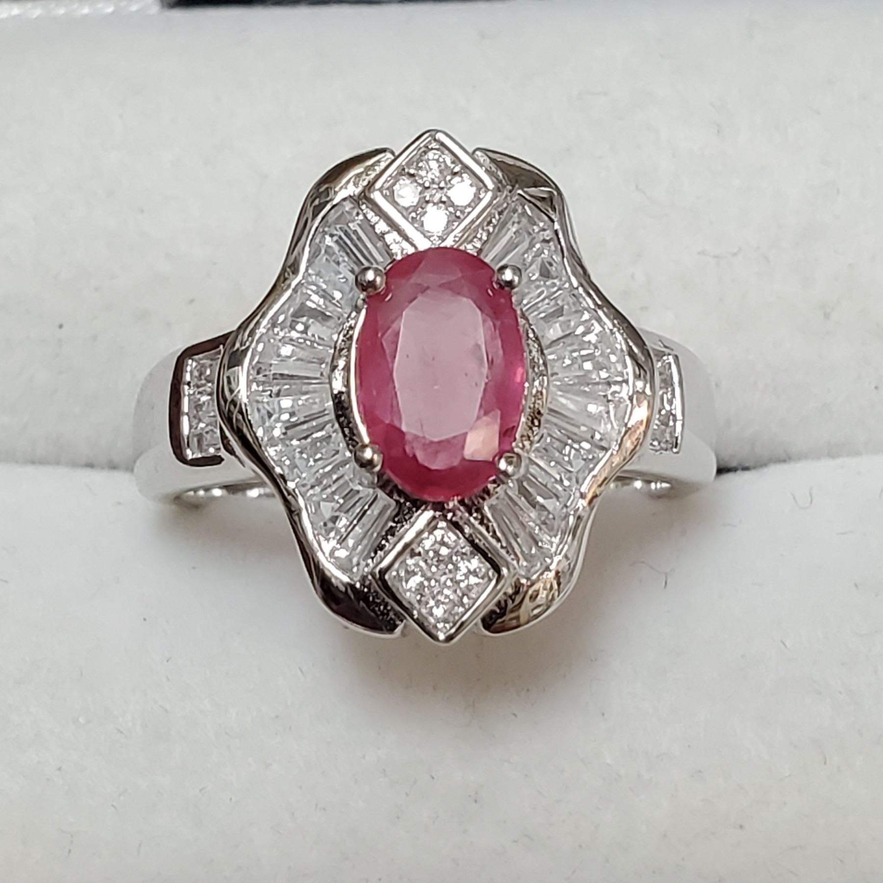 SILVER RUBY CRYSTAL CZ RING
