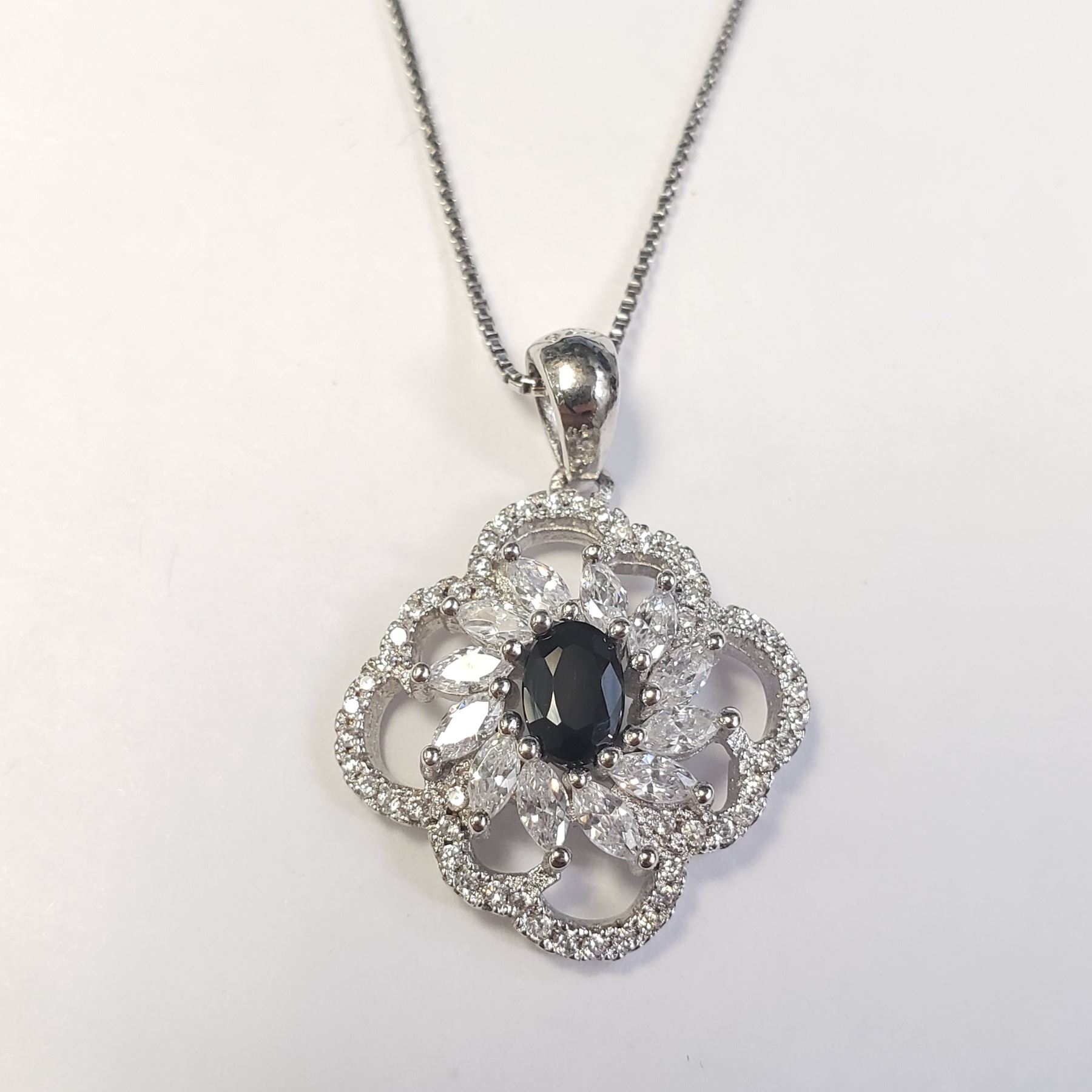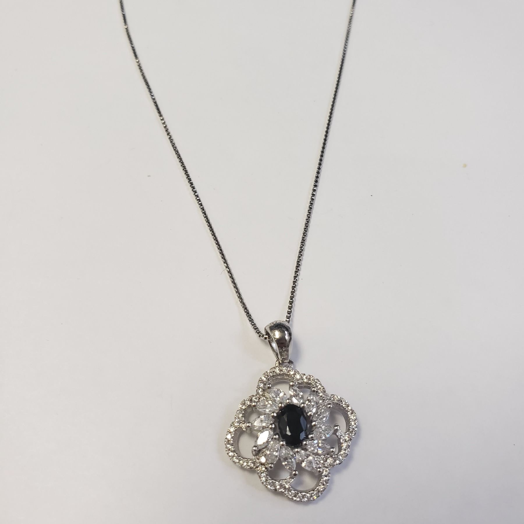 SILVER SAPPHIRE AND CZ 18" NECKLACE