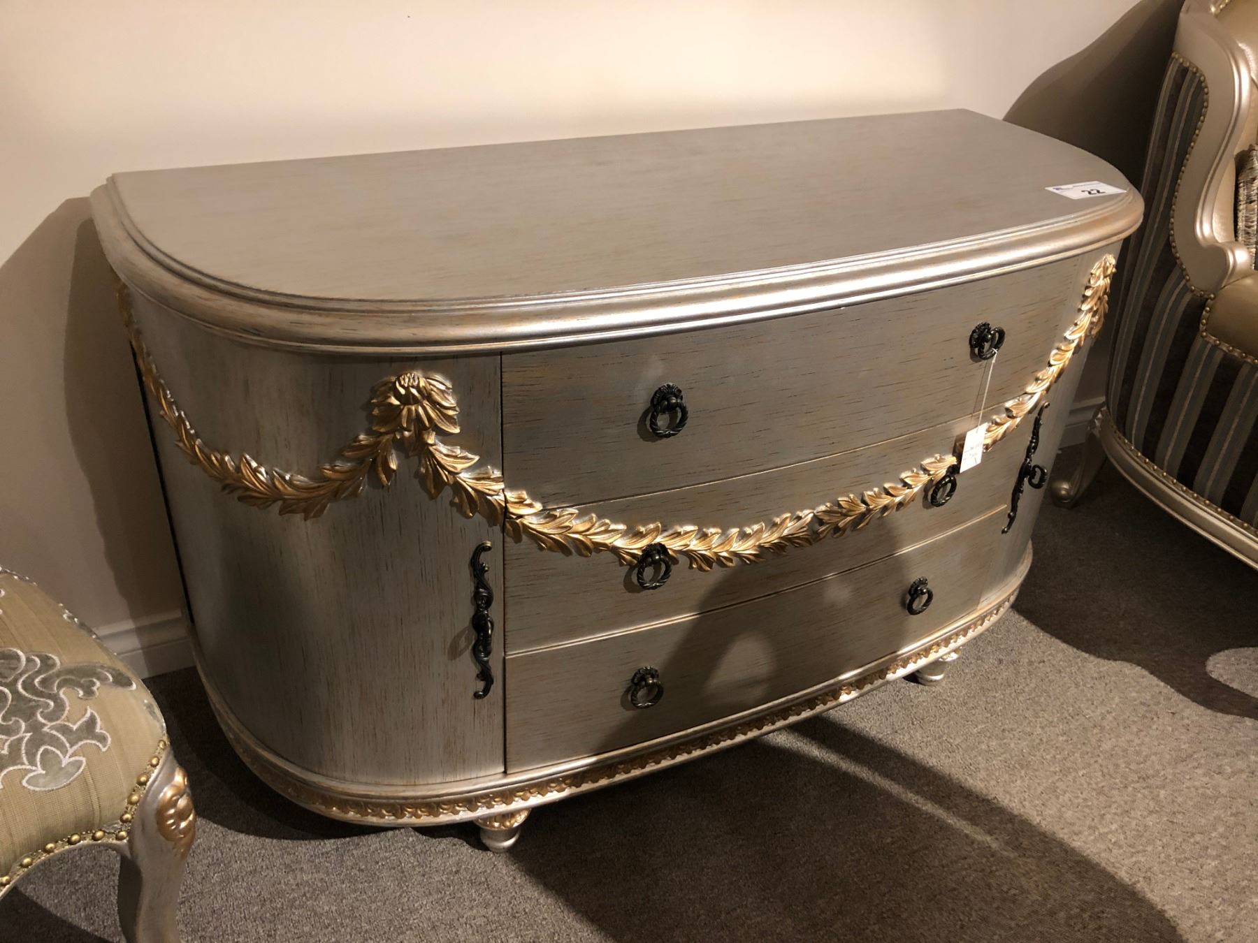 SILVER SIDE BOARD WITH GOLD TRIM. RETAIL $3,650.00