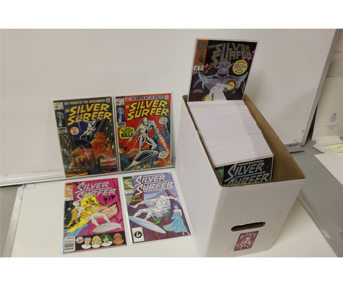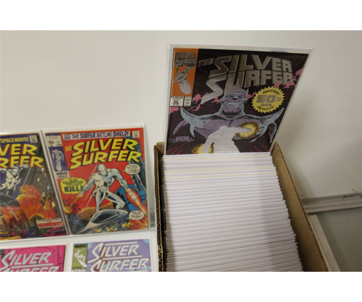 SILVER SURFER (1987) LONG RUN, SHORT BOX. HIGH GRADE AVERAGE. INCLUDES VOL. 2, ONE-SHOT (1982) & THE MOEBIUS 1988 MINI SERIES + VOL. 1 #8 (1969) & #17 (1970) IN LOWER MID GRADE.