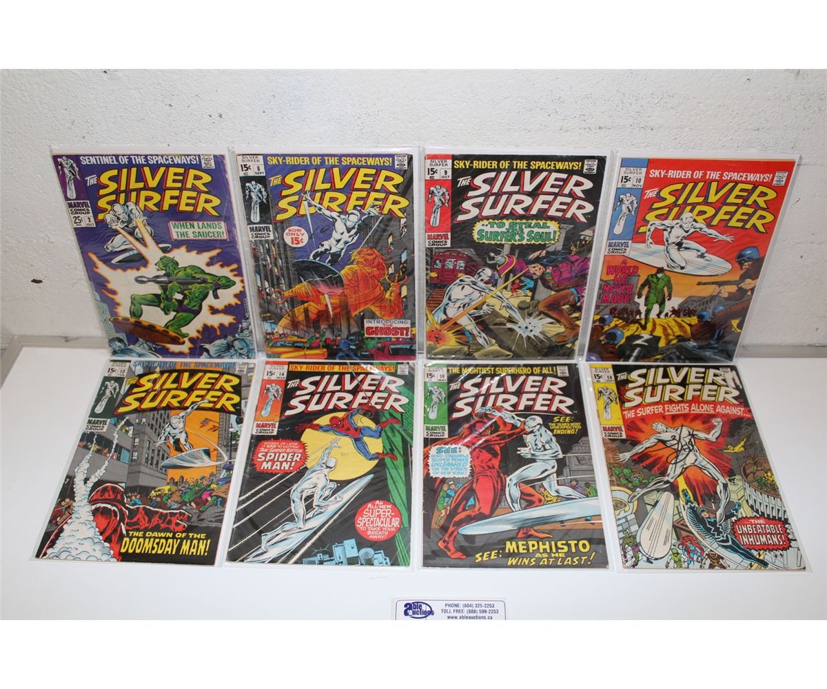 SILVER SURFER #2, 8-10,13-14, 16 & 18 (1968-70) 1/2 THE SET IN ONE LOT LOW TO MID GRADE ISSUES ALL SOLID & COMPLETE, 8 BOOKS TOTAL.