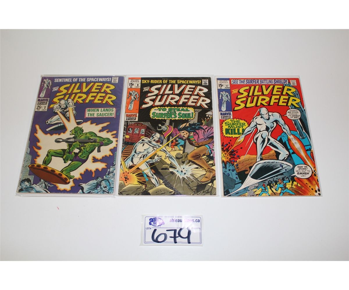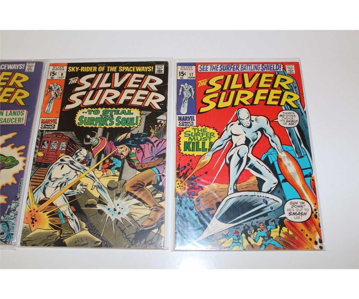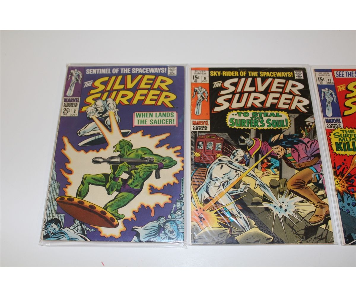 SILVER SURFER #2, 9 & 17 (1968-70) #2 IS A VERY SOLID MID TO HIGH MID GRADE, GLOSSY & SUPPLE COPY. #9 & 17 ARE LOWER GRADE, SOLID & COMPLETE