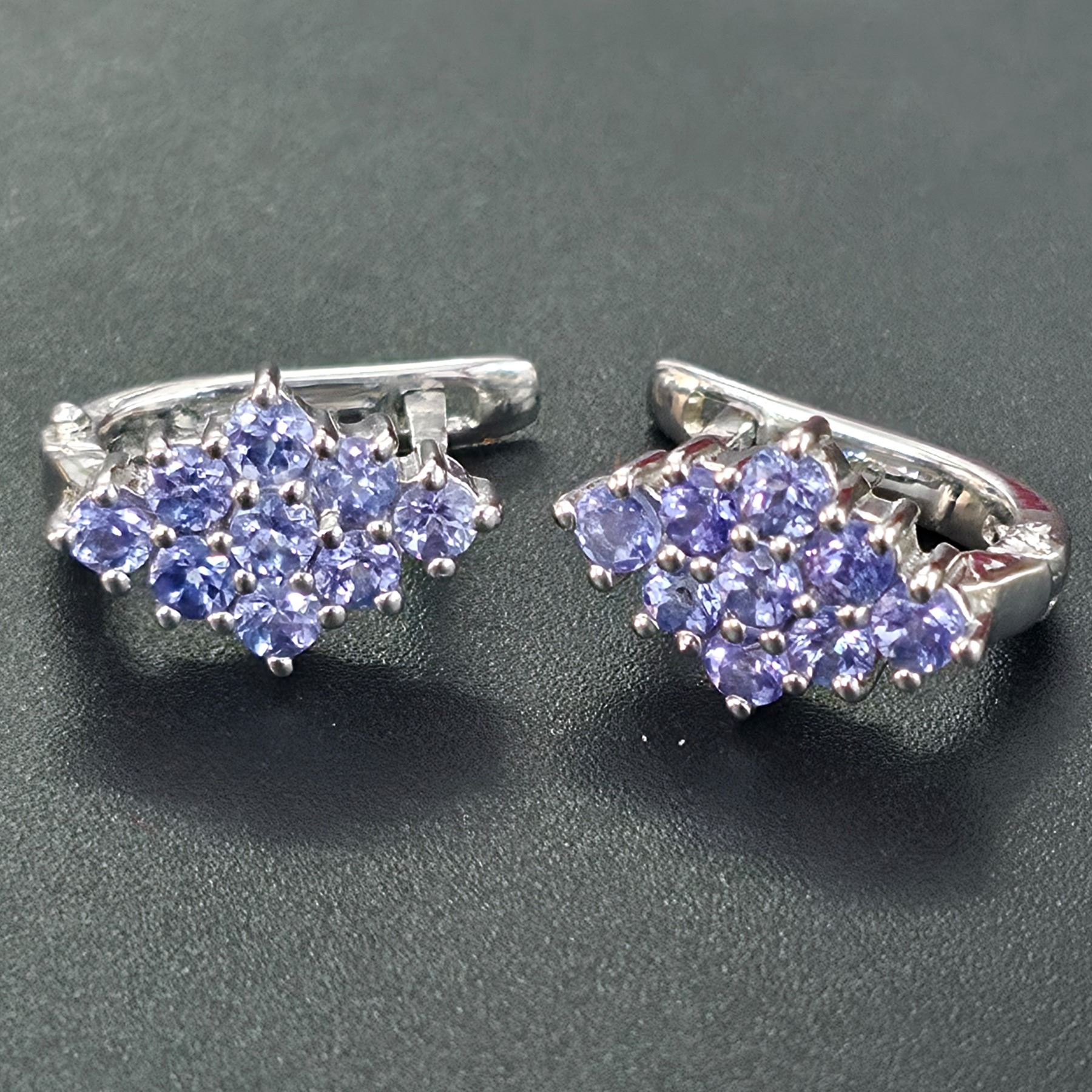 SILVER TANZANITE(0.85CT) RHODIUM PLATED EARRINGS (~WEIGHT 3.3G)