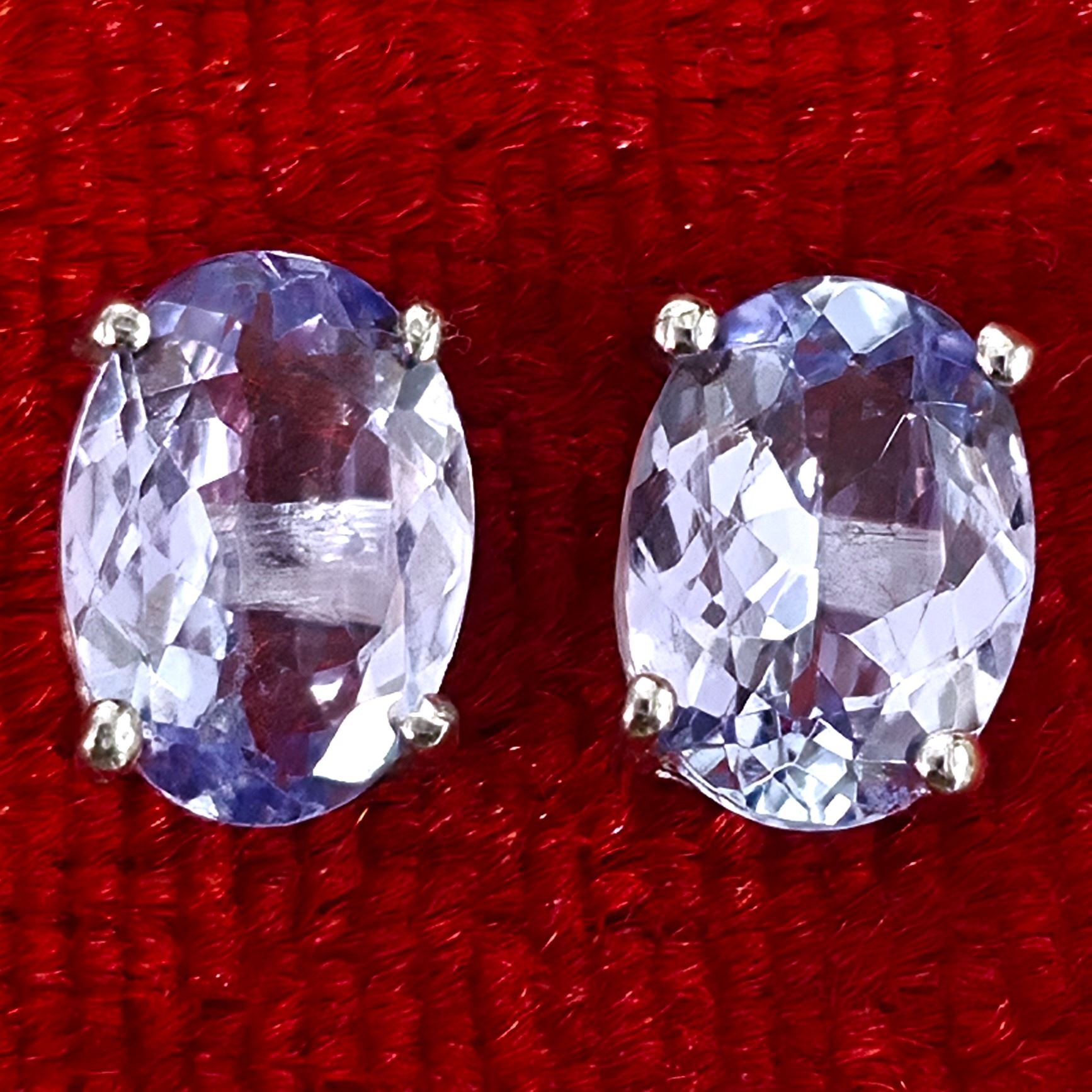 SILVER TANZANITE(1.8CT) RHODIUM PLATED EARRINGS (~WEIGHT 1.15G)