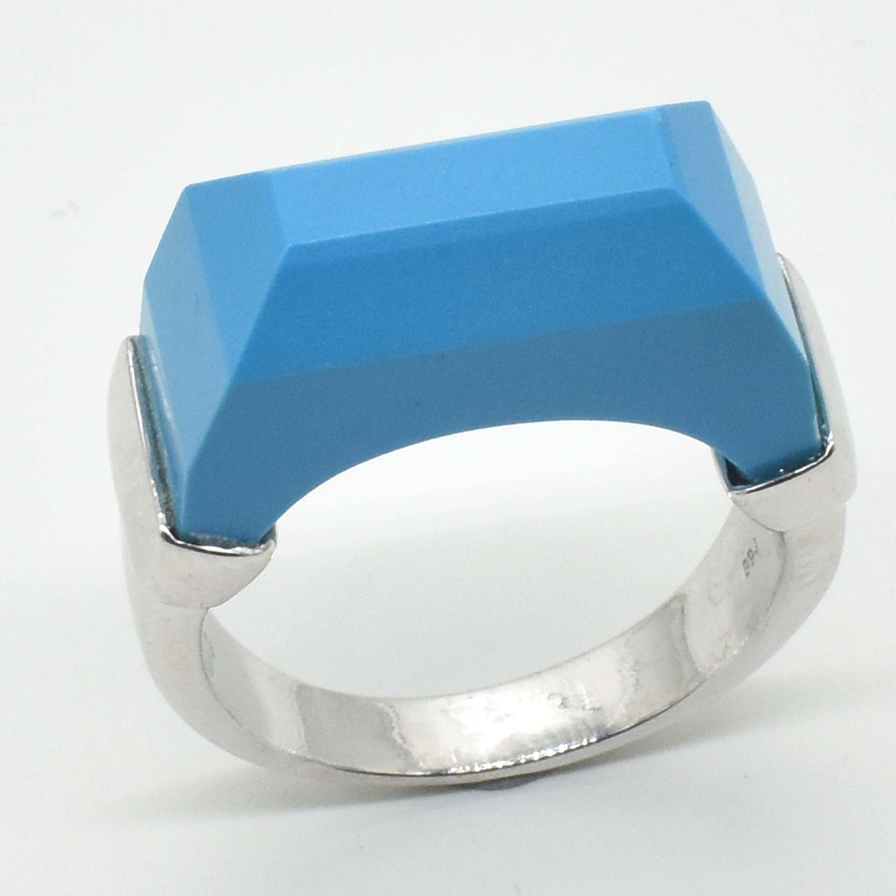 SILVER TURQUOISE MAN MADE (12.6CT) RING