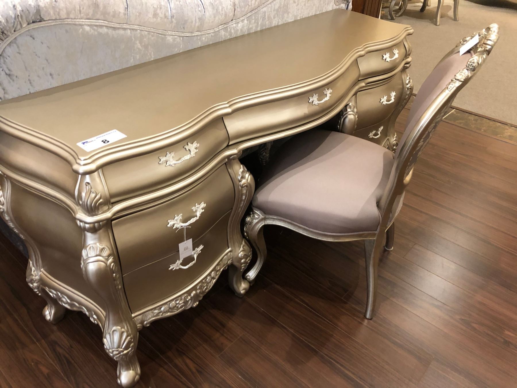 SILVER WITH FROSTED HANDLES HALL / BEDROOM DESK WITH CHAIR. RETAIL $4,600.00