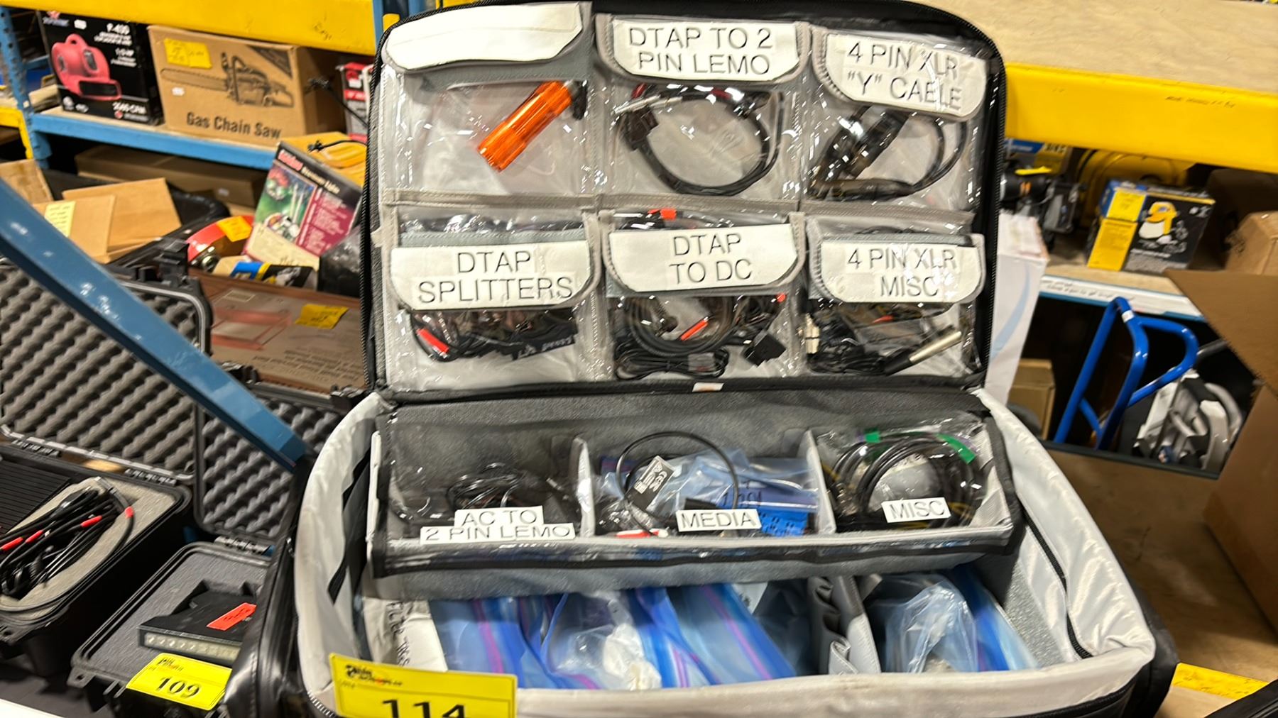 SIM VIDEO DIT FABRIC COMMERCIAL PRODUCTION CART DITTY TRANSPORT BAG WITH ASSORTED CONTENTS