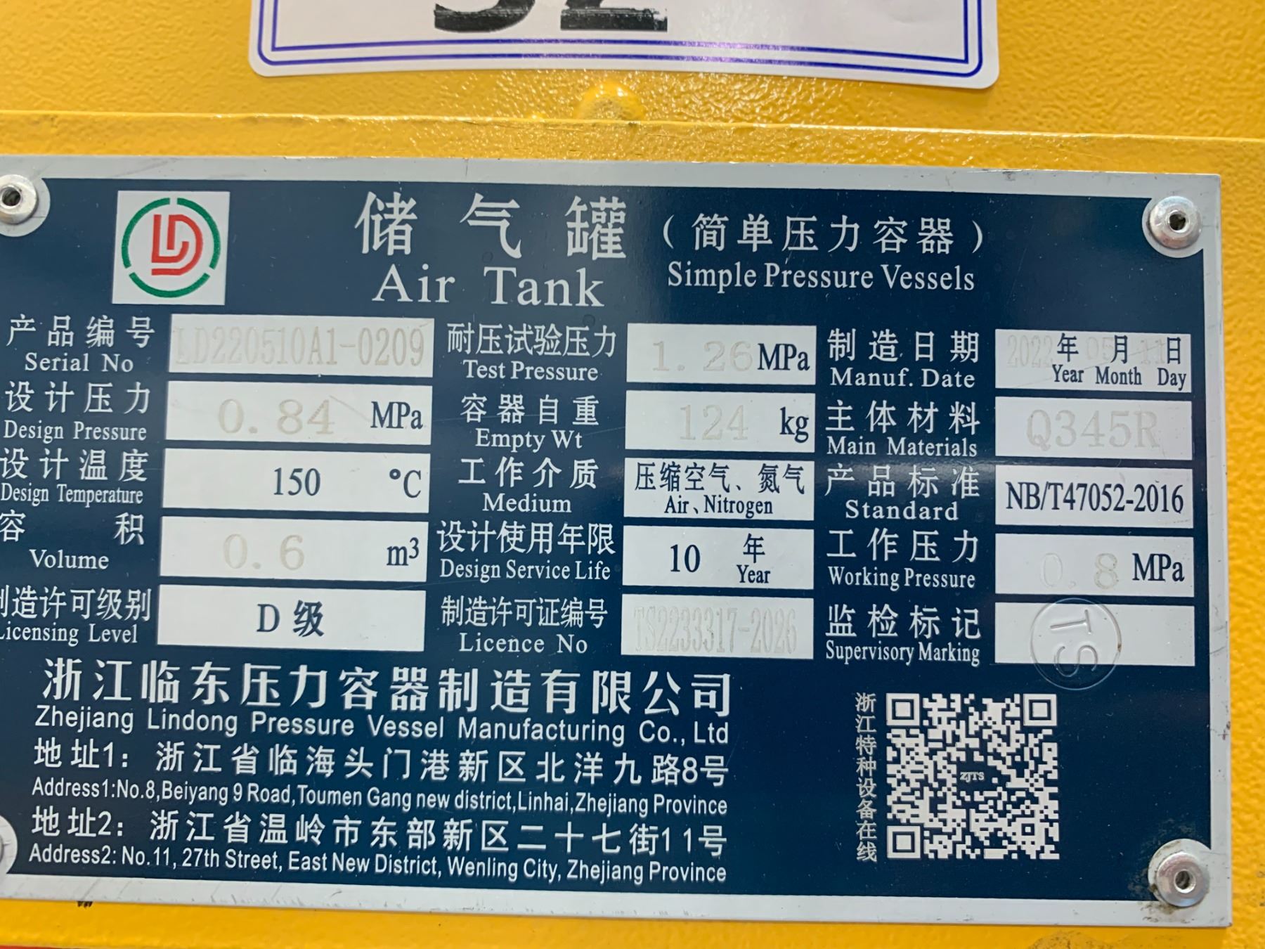 SIMPLE PRESSURE VESSELS LARGE VERTICAL AIR TANK