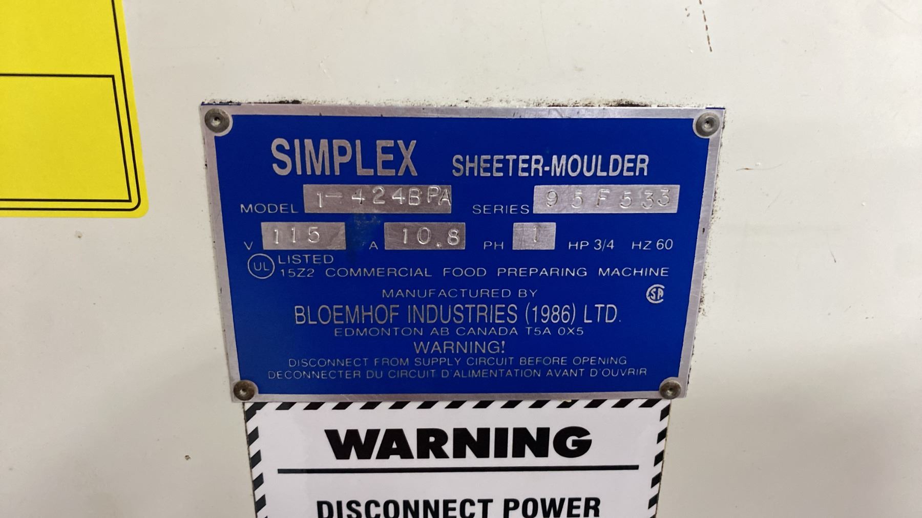 SIMPLEX 1-424BPA COMMERCIAL 115V SINGLE PHASE MOBILE SHEETER / MOULDER MACHINE