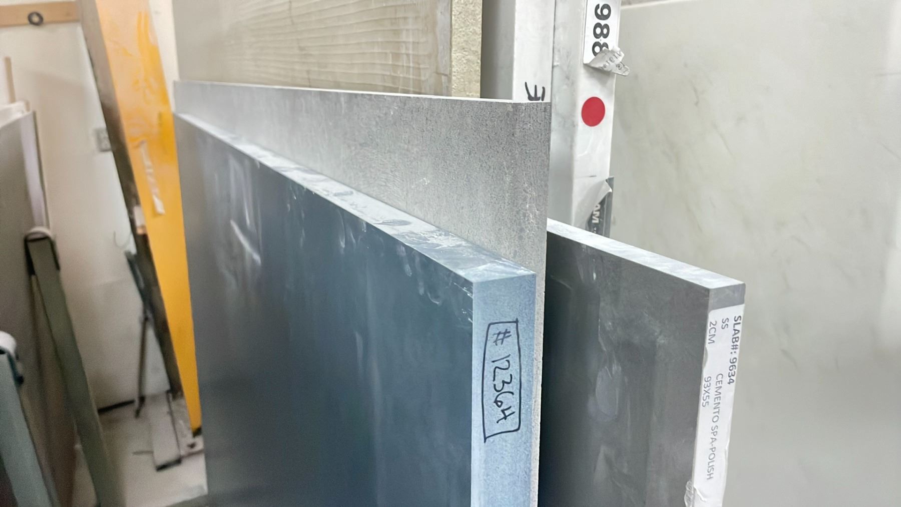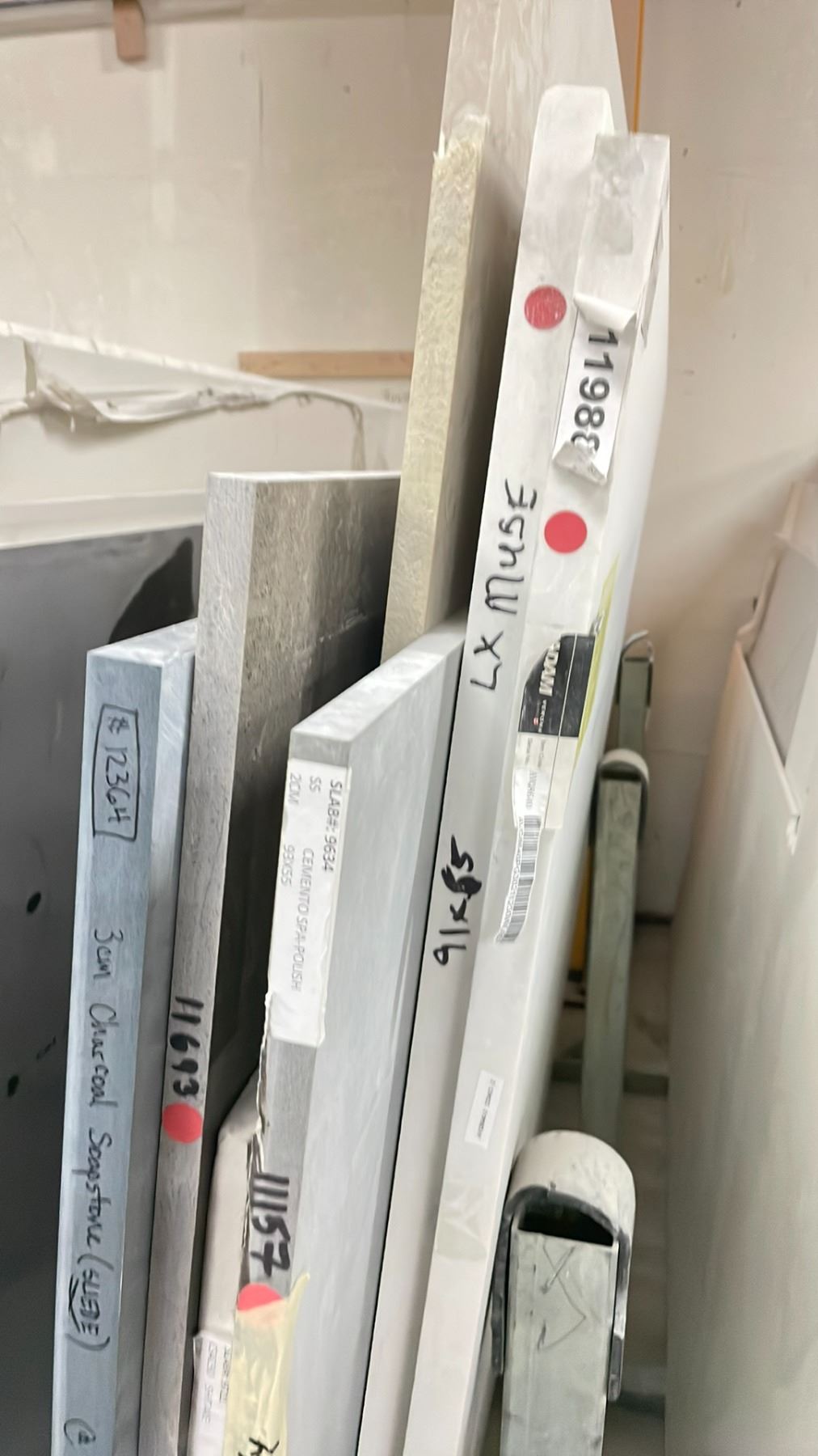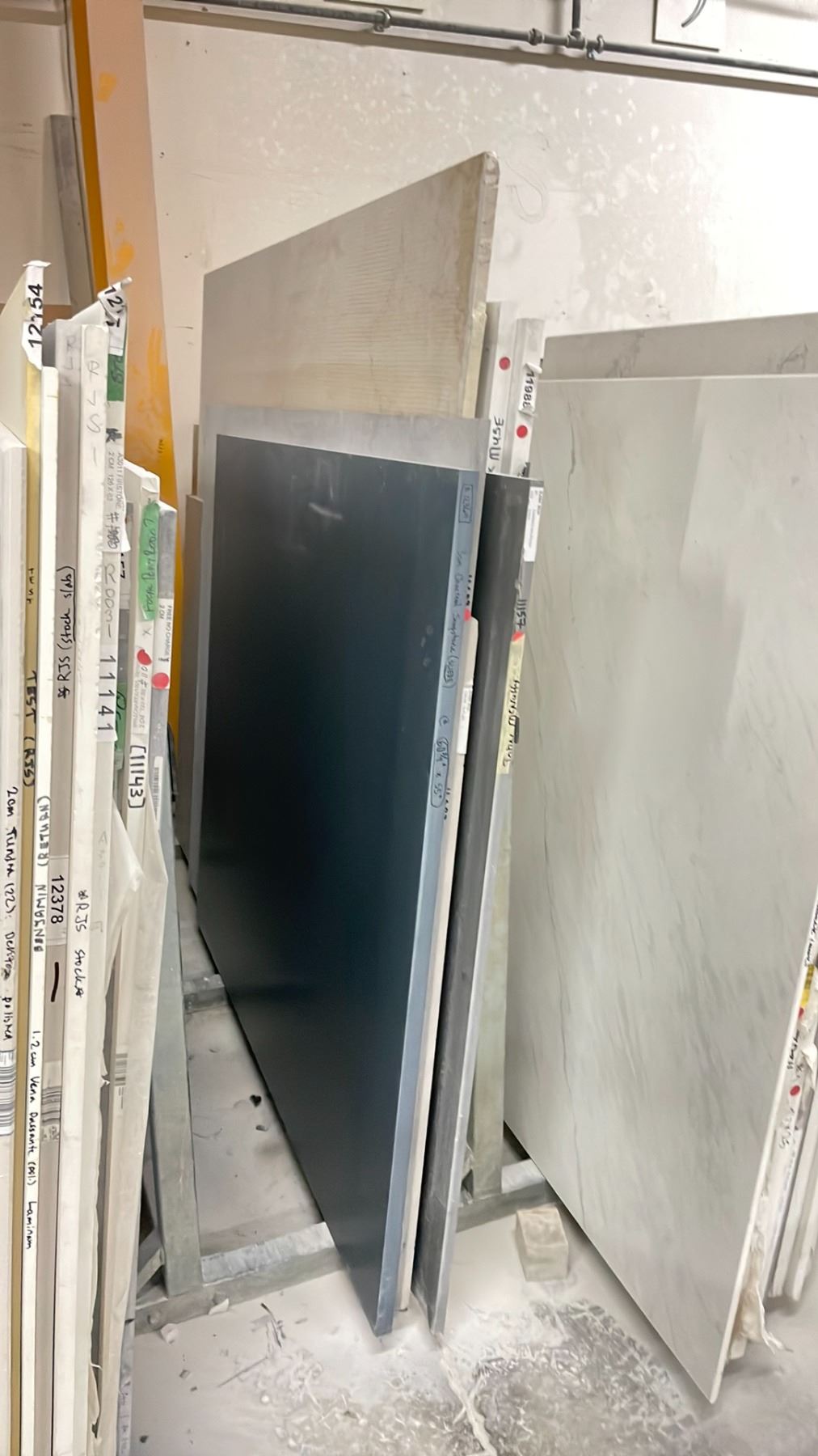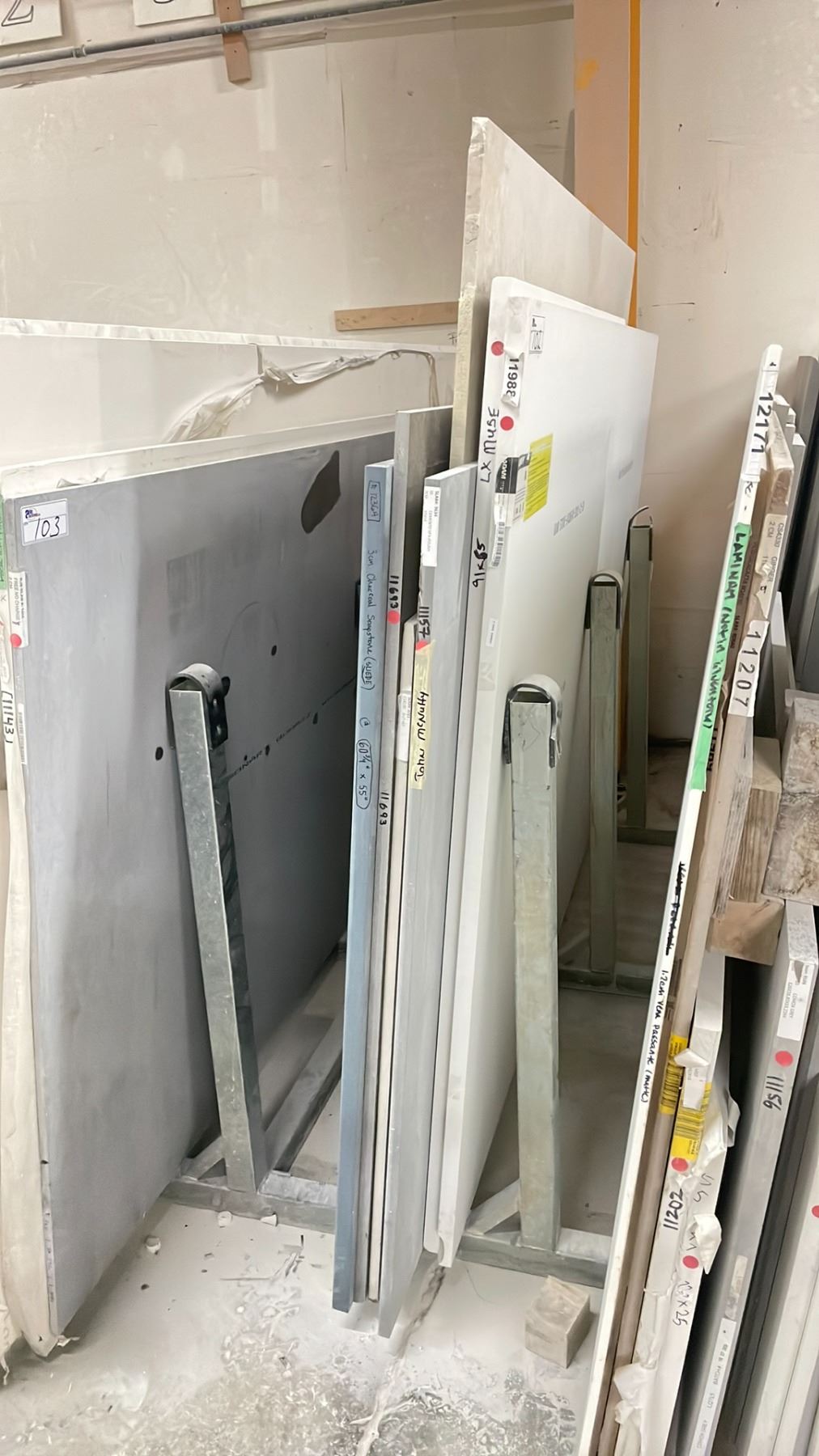 SINGLE BAY OF ASSORTED COMMERCIAL COUNTER TOP STONE SLAB MATERIAL
