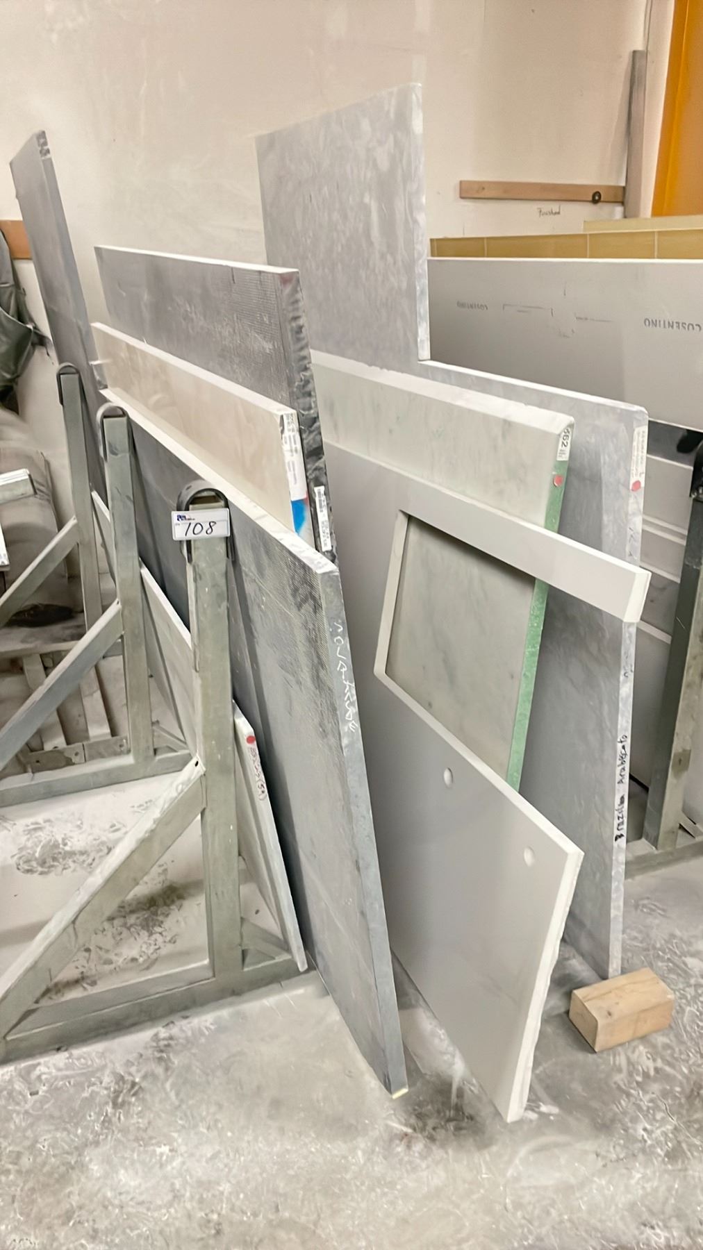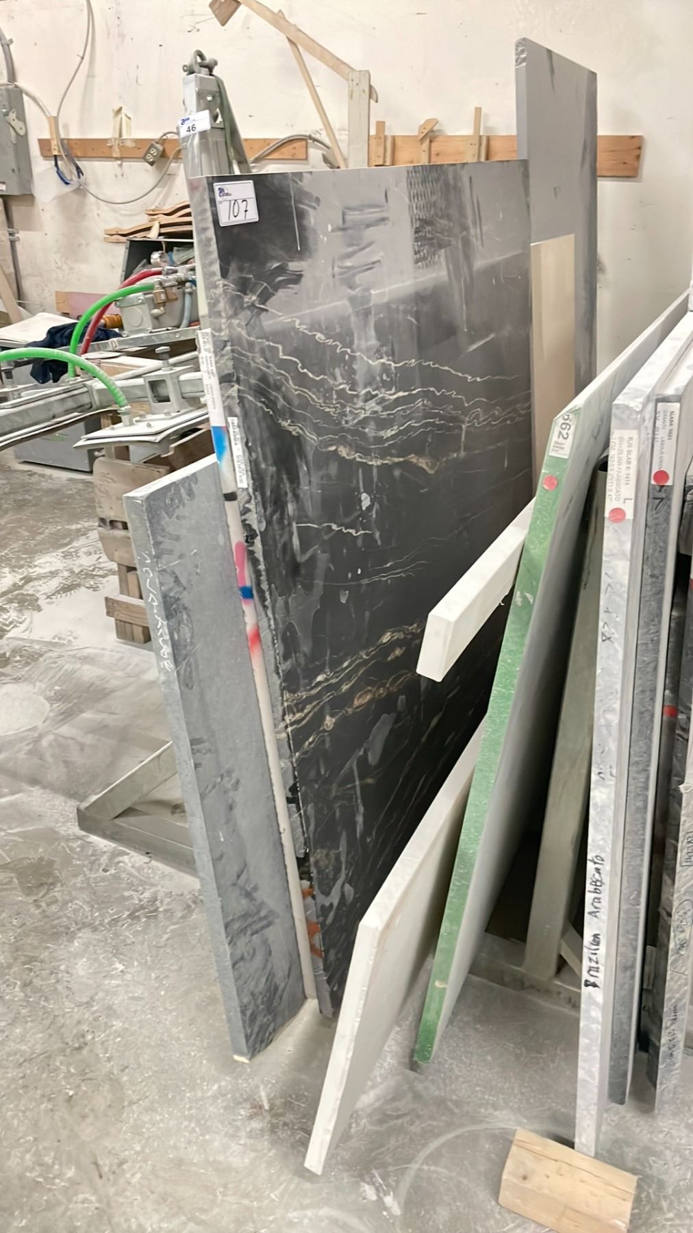SINGLE BAY OF ASSORTED COMMERCIAL COUNTER TOP STONE SLAB MATERIAL