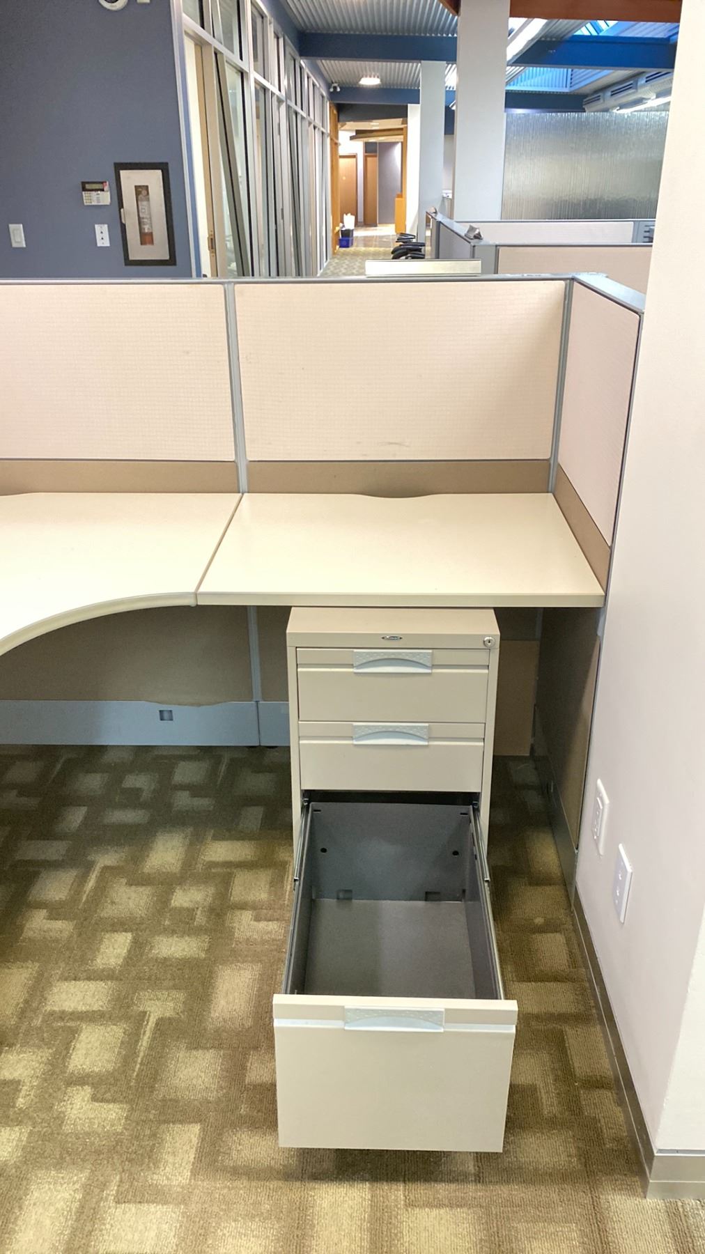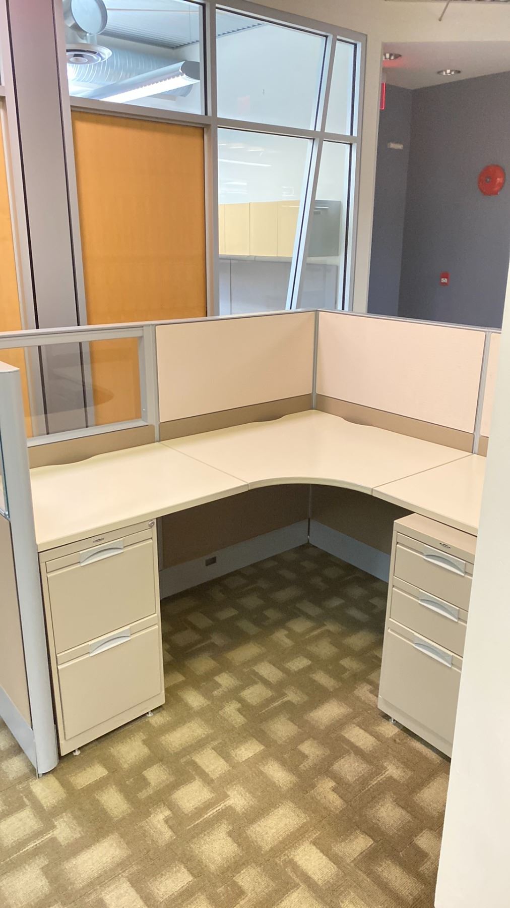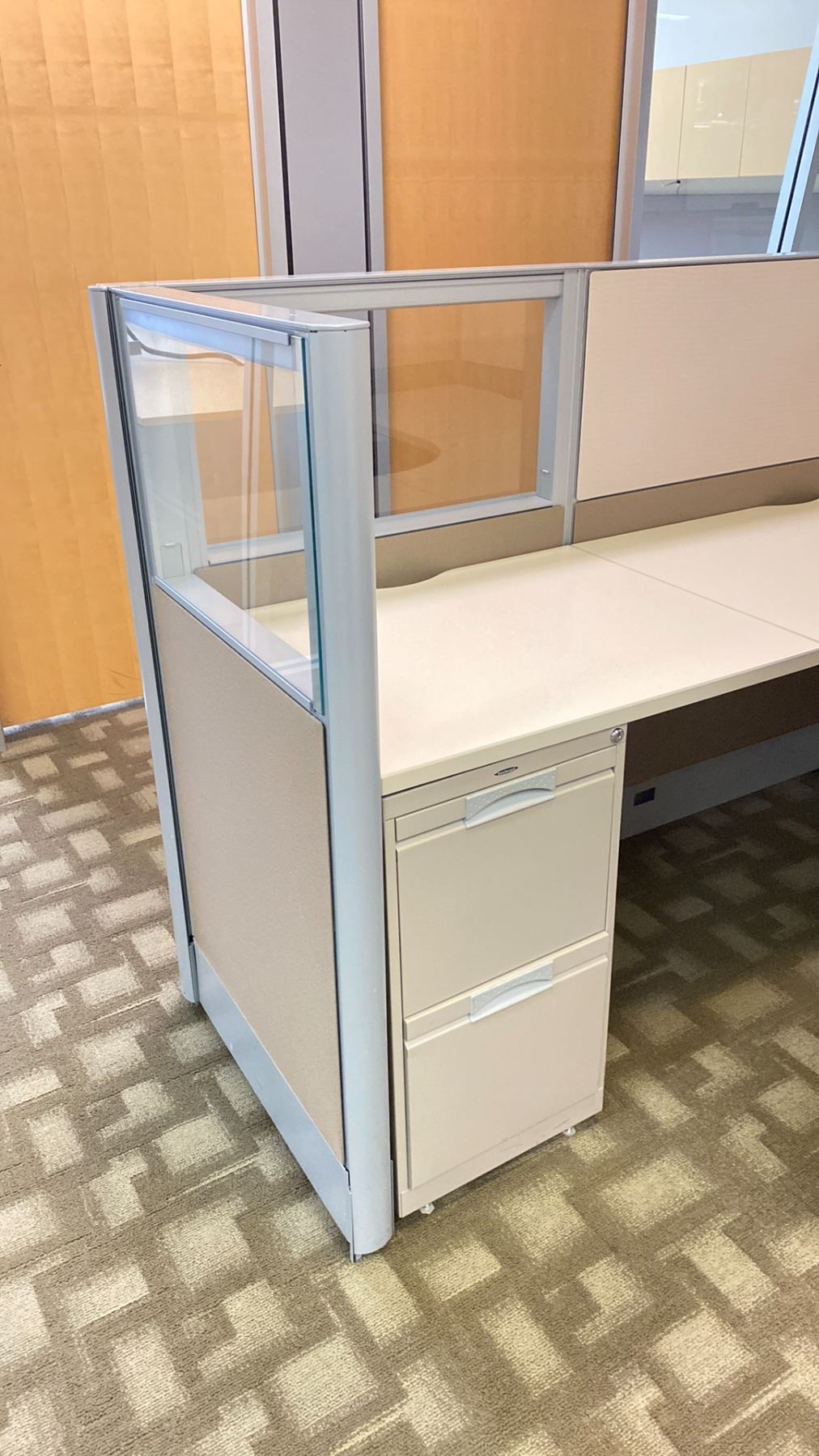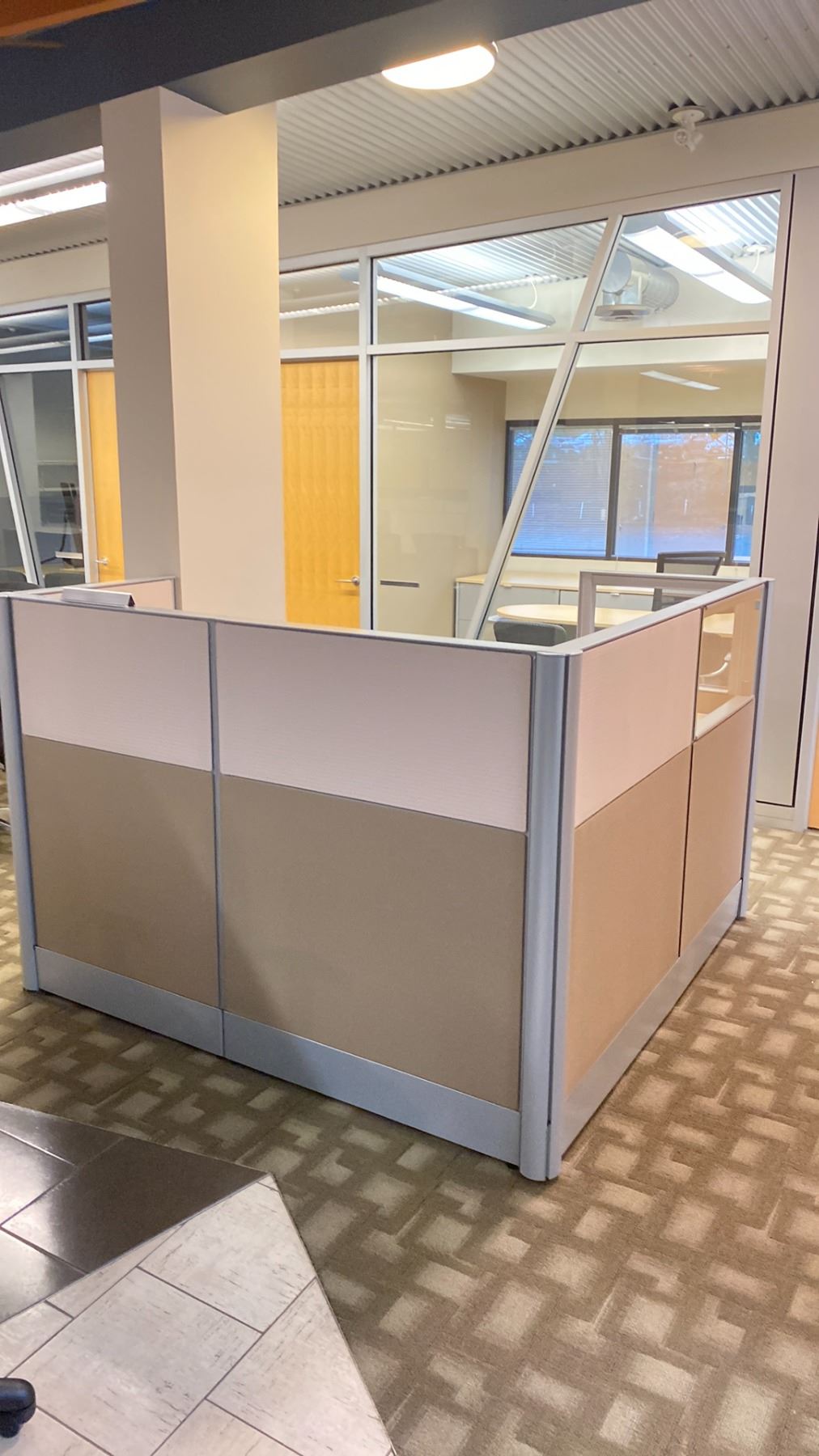 SINGLE DESK WITH CUBICLE WALLS OFFICE WORK STATION SYSTEM *APPROX. DIMENSIONS 6FT ACROSS X 6FT WIDE X 4FT HIGH*