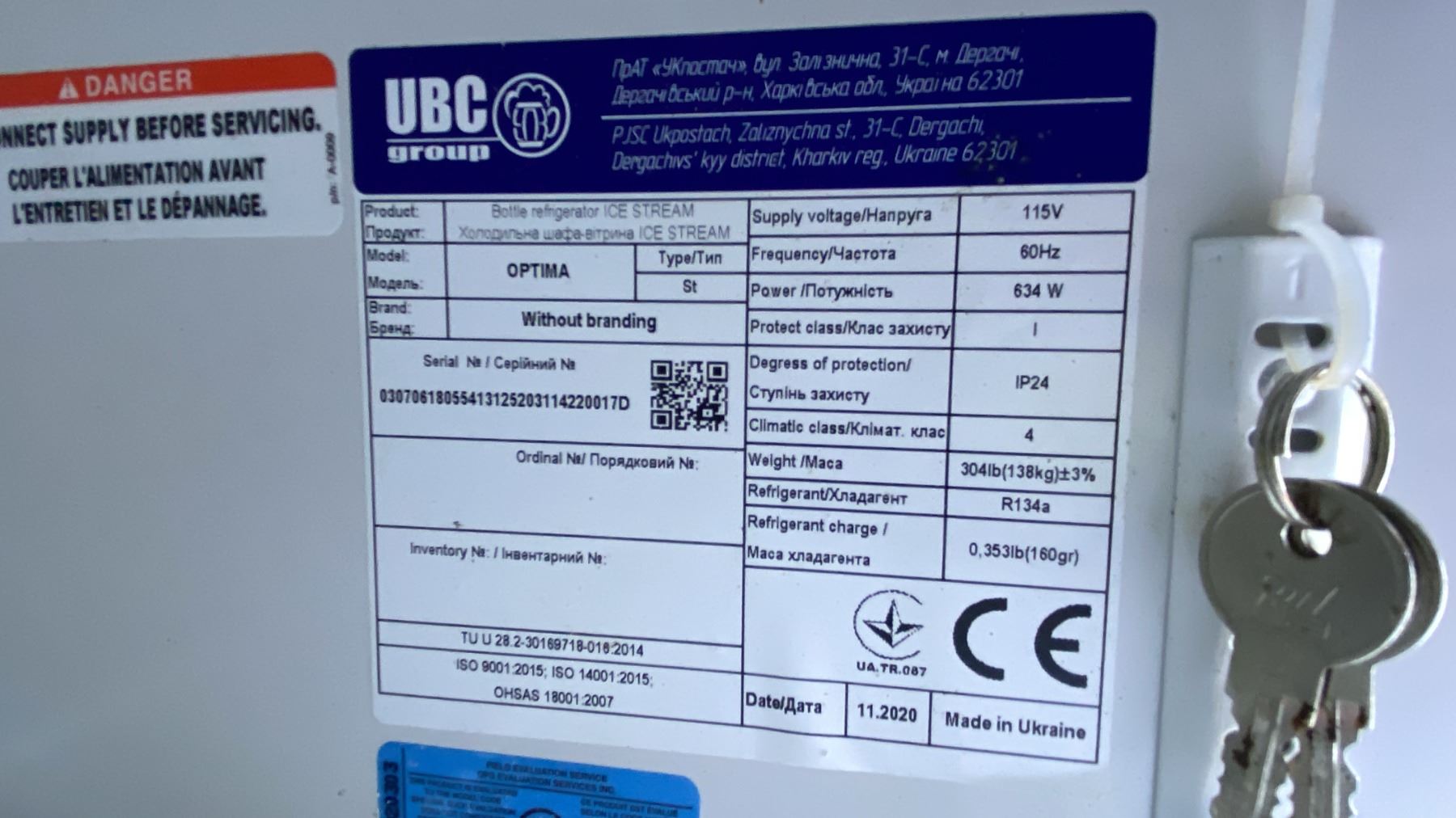 SINGLE DOOR COMMERCIAL COOLER *CONTENTS NOT INCLUDED*