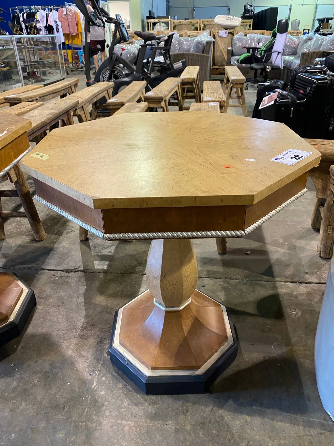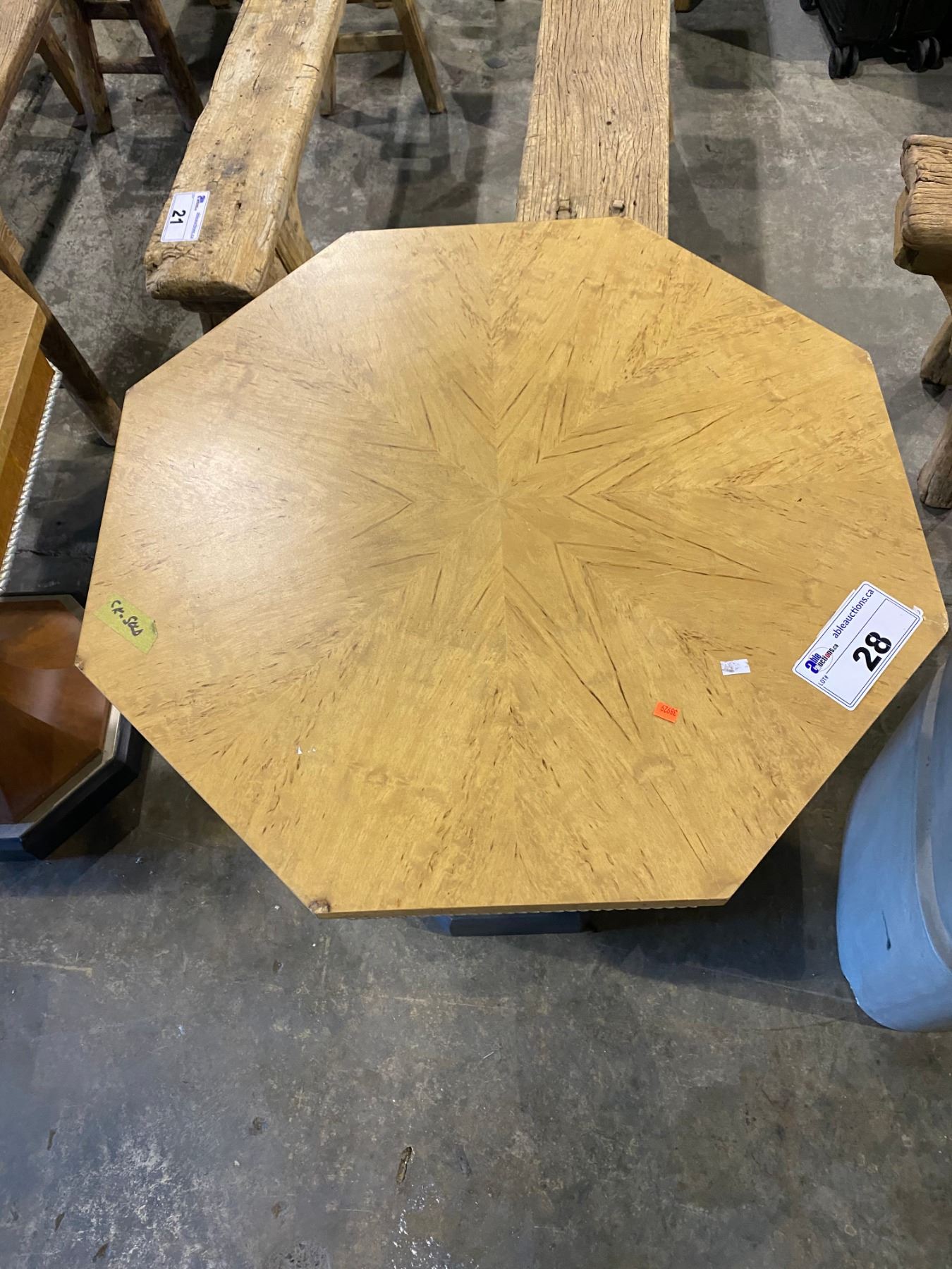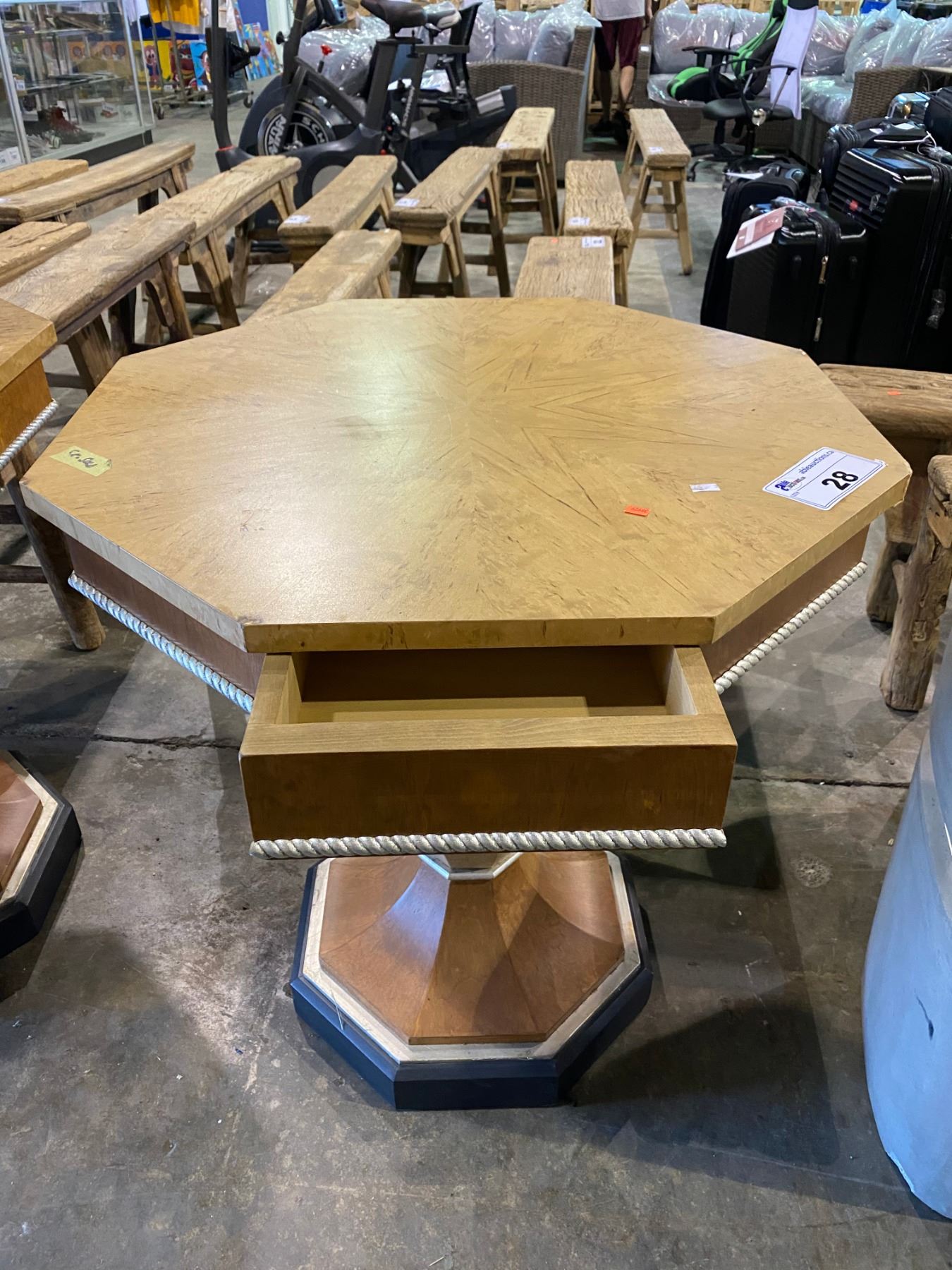SINGLE DRAWER BIRDS EYE MAPLE OCTAGON PARLOUR TABLE (APPROX. H 28.5" W 26")