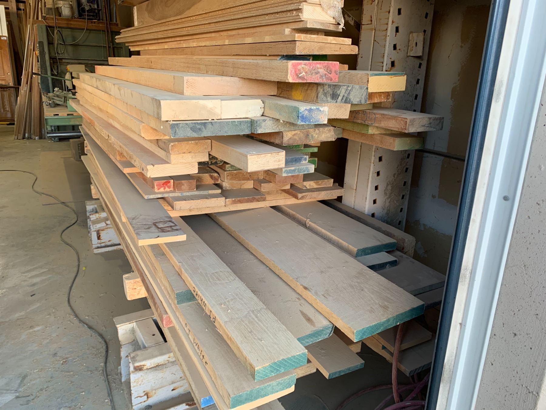 SINGLE SIDED CANTILEVER MATERIAL STORAGE RACK WITH APPROX. 3 PALLETS OF ASSORTED HARDWOOD *MUST HAVE PROPER EQUIPMENT TO REMOVE, NEEDS DISMANTLING*