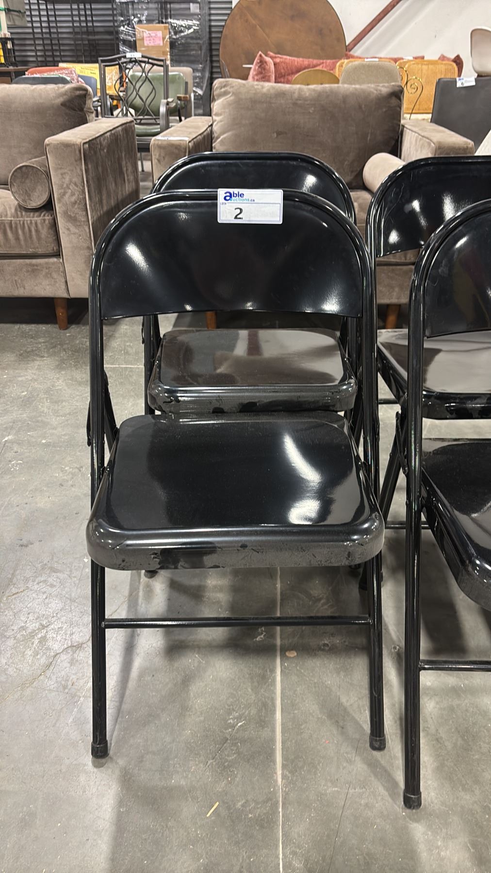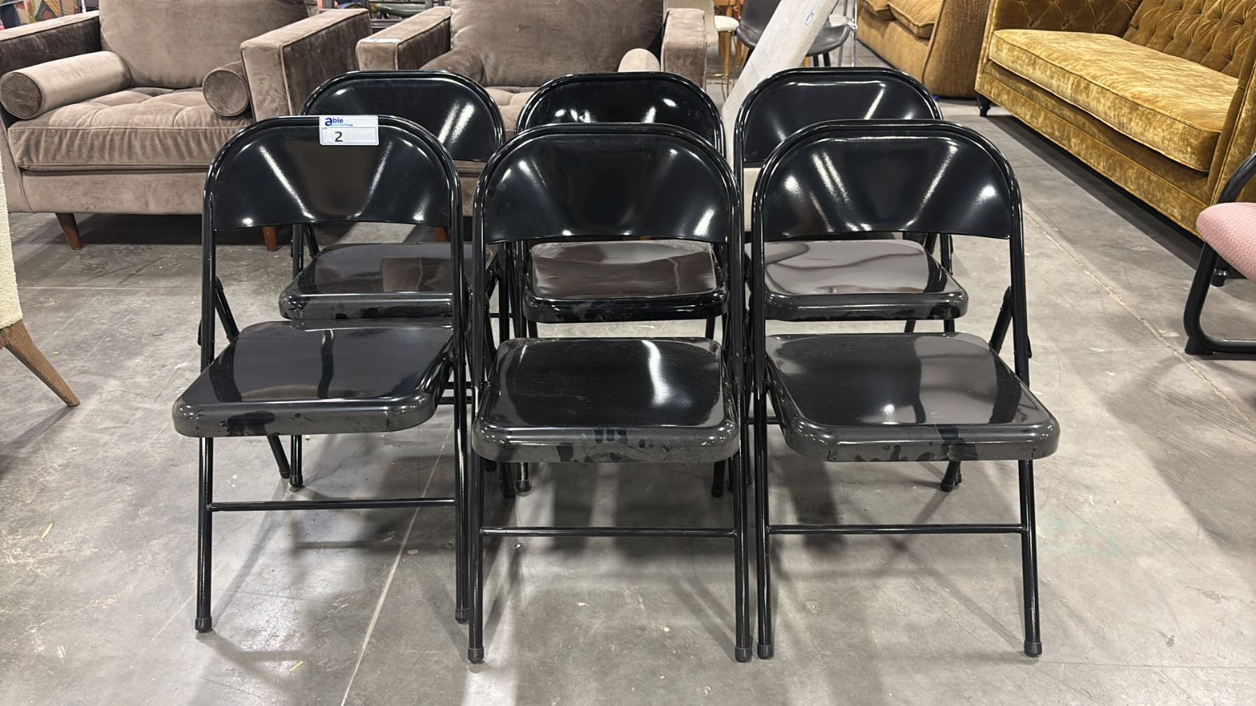 SIX BLACK METAL FOLDING CHAIRS