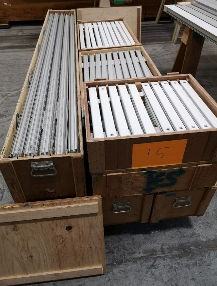 SKID 15 - 40 PCS ALLUSET POST, SILVER, 2470MM, 40 PCS ALLUSET POST, WHITE, 2470MM, 50 PCS ALLUSET RAIL, WHITE, 938MM, 50 PCS ALLUSET RAIL, SILVER, 938MM 50 PCS ALLUSET RAIL, WHITE, 443MM, 50 PCS ALLUSET RAIL, SILVER, 443MM, 11 PCS DS FABRIC, SILVER 120X2.000MM, 2 PCS DS FABRIC, WHITE 120X2.000MM, 8 PCS DS FABRIC, BLACK 120X1.500MM