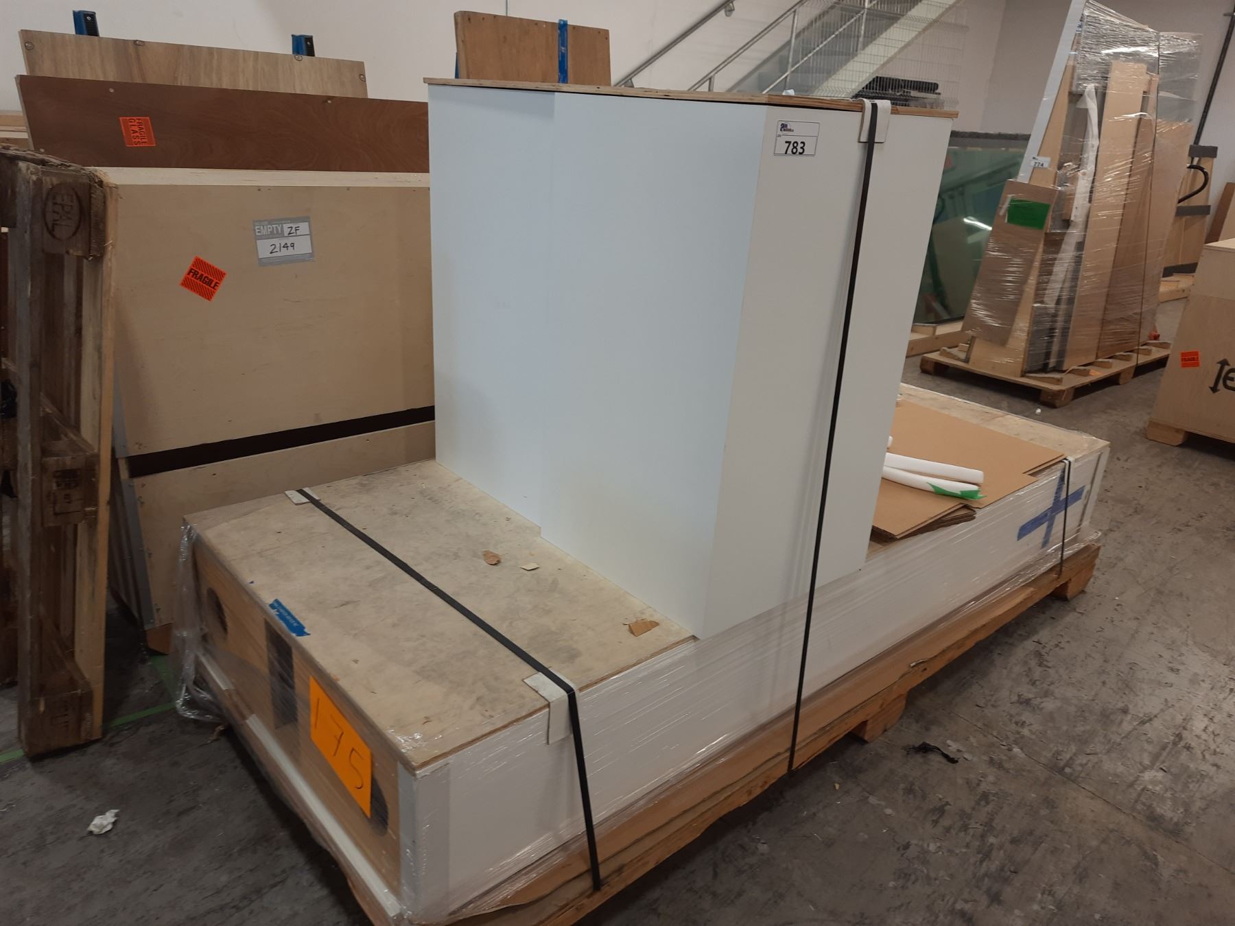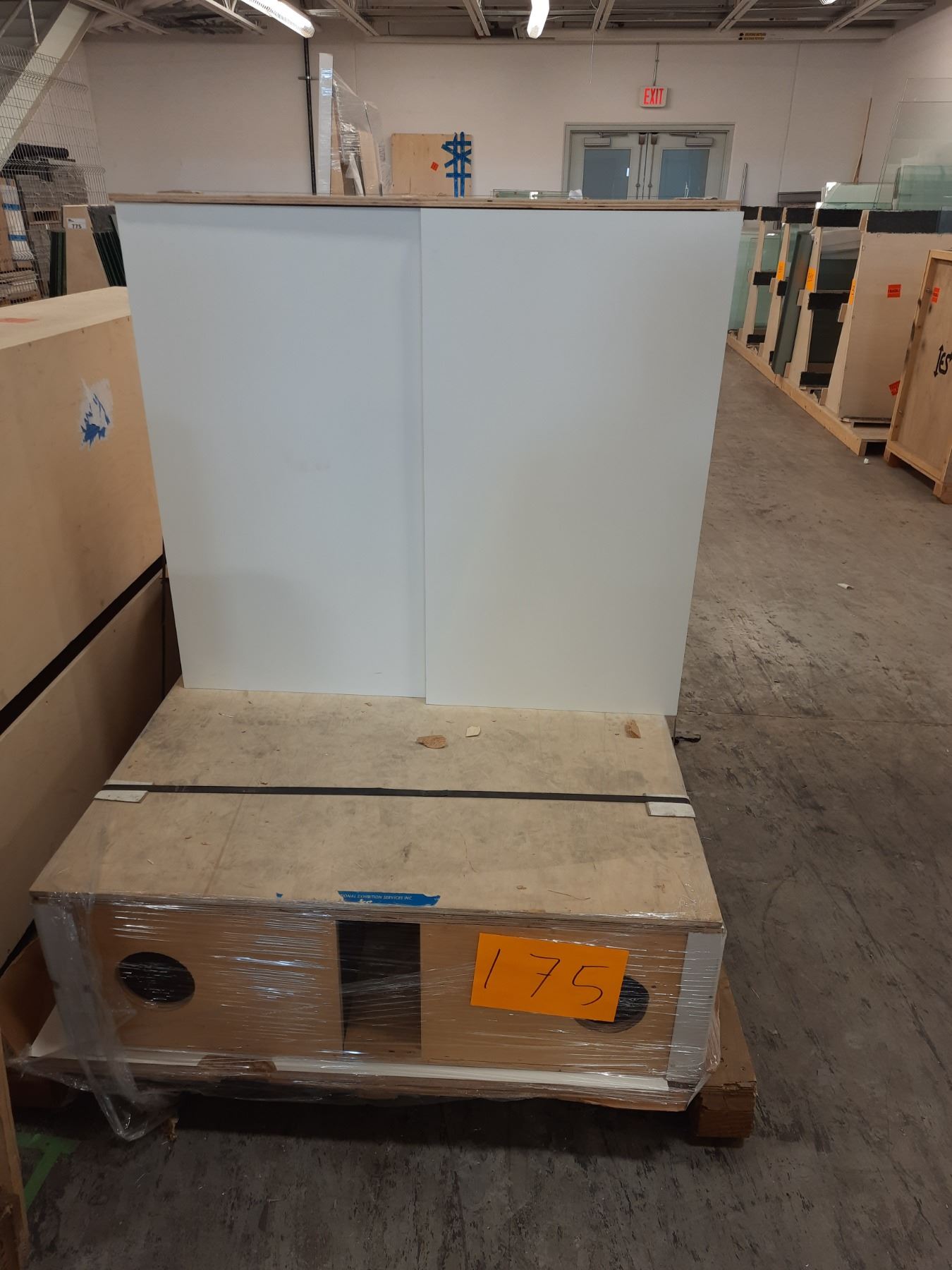SKID 175 - WHITE MONITOR PODIUM AND 2 PEDESTALS