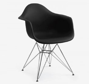 SKID 311 - EAMES EIFFEL ARMCHAIR, BLACK PLASTIC W/ CHROME LEGS