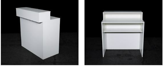 SKID 98 - EXHIBITOR INFO COUNTERS, WHITE MEL, 900X600X1100MM(H)