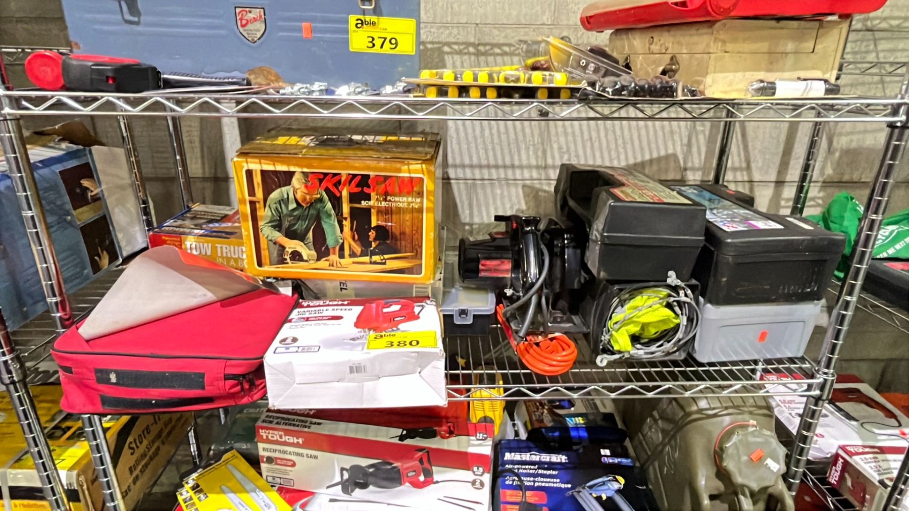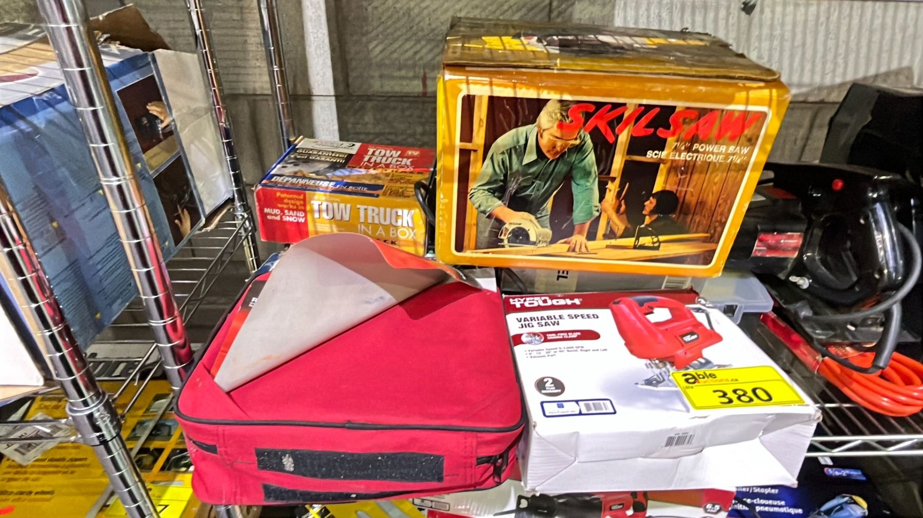 SKILSAW 7 1/4" POWER SAW, TOW TRUCK IN A BOX, ROADSIDE SAFETY KIT, EXTENSION CORD, 7 1/4" CIRCULAR SAW, TOOL BOXES WITH CONTENTS & MORE
