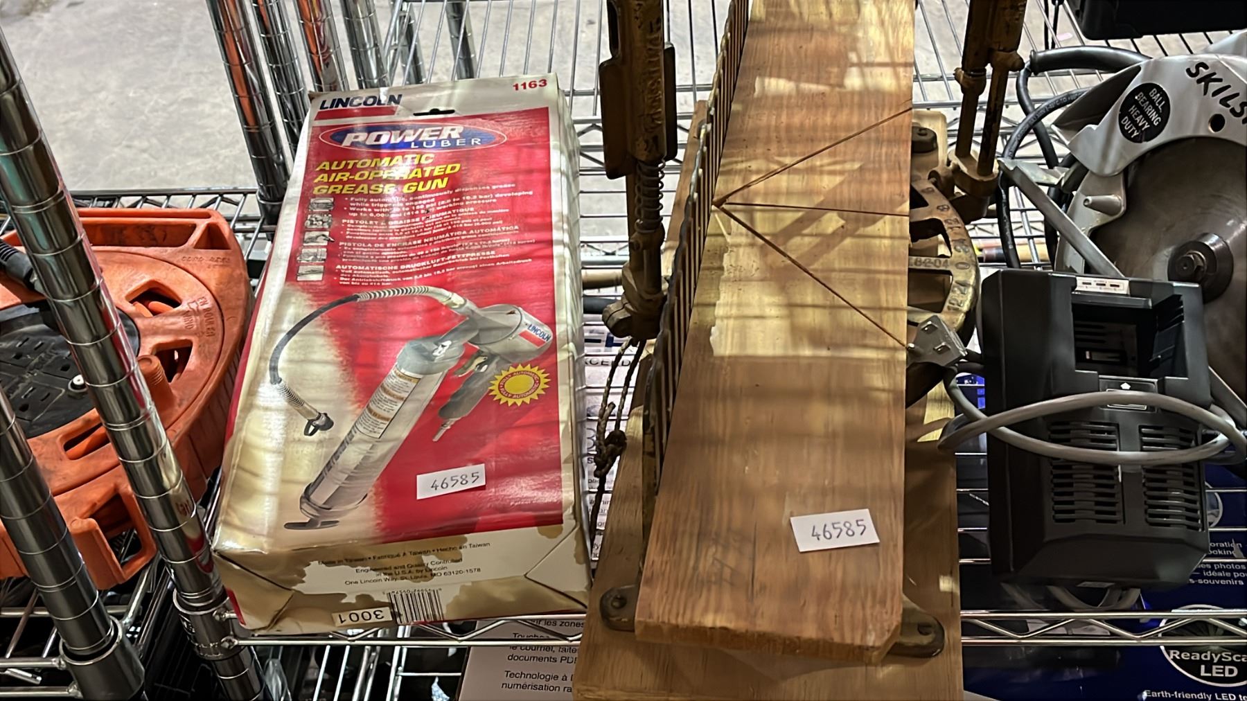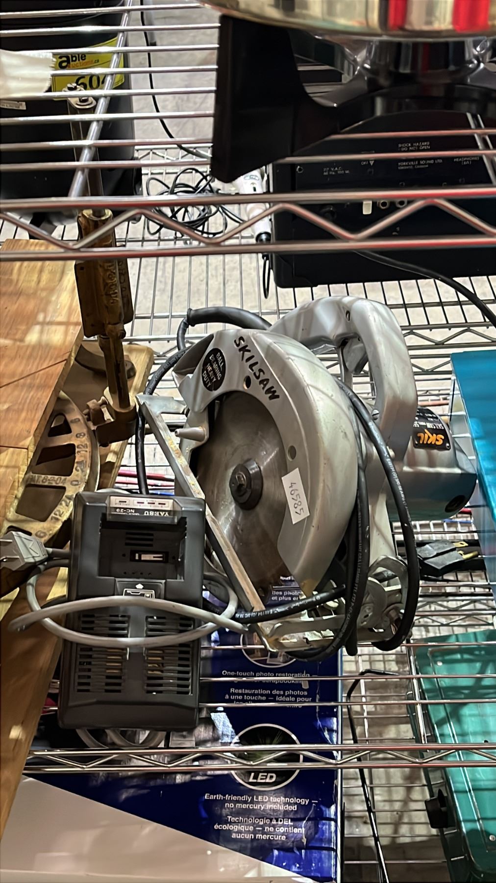 SKILSAW ELECTRIC CIRCULAR SAW,TWO METAL SMALL PARTS ORGANIZERS, AUTOMATIC AIR OPERATED GREASE GUN & MORE