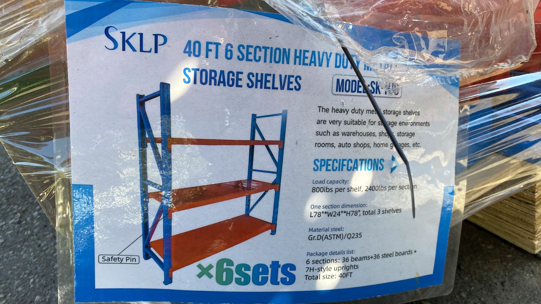 SKLP SK-HJ6 INDUSTRIAL 40' L BLUE / ORANGE 6 SECTION HEAVY DUTY METAL STORAGE SHELVING *INCLUDES 36 BEAMS, 36 STEEL BOARDS, & 7H STYLE UPRIGHTS*