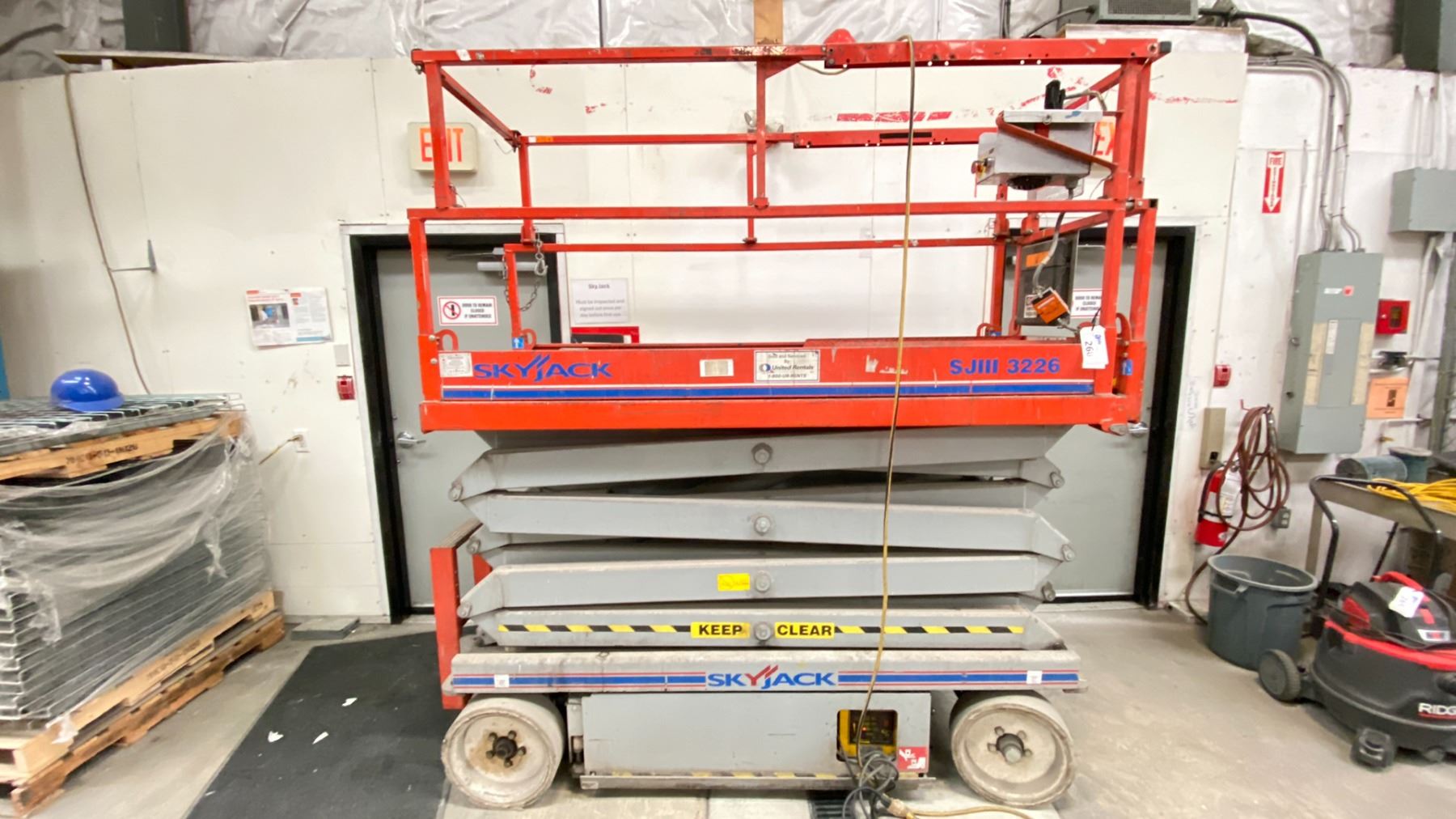 SKYJACK SCISSOR LIFT MODEL SJIII 3226 500 LB MAX CAPACITY, 26' LIFT, PLATFORM CONTROL BOX