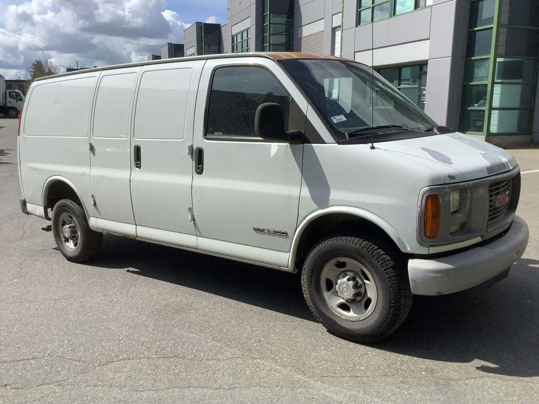 *SL*2000 GMC SAVANA G2500 VAN, WHITE, GAS, AUTOMATIC, V#1GTGG25R0Y1240457, 526,865KMS, RD,PL,TW,AC, 1 ICBC DECLARATION NO DETAILS, 5 ICBC REPAIRED DECLARATIONS $2615.23, PAINT ISSUE ON ROOF AND SIDES, PAINT PEELING ON HOOD, CHIP IN WINDSHIELD LOCATED AT ABLE AUCTIONS LANGLEY SOUTH, 26251 FRASER HWY