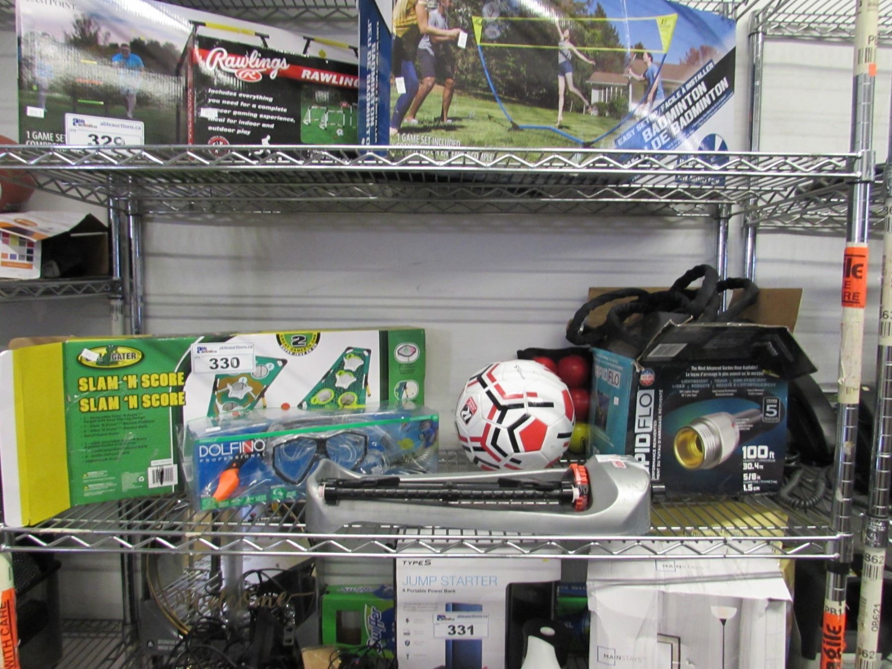 SLAM 'N SCOREGAME, SOCCER BALL, EXTENDING HOSE, BALLS, SPRINKLER, SNORKEL, ETC