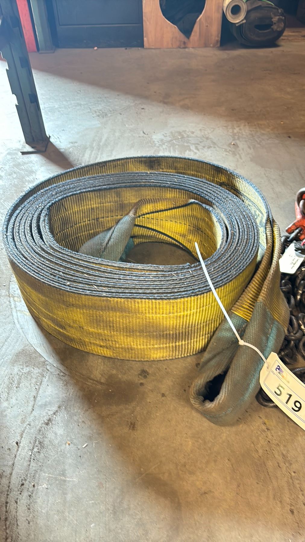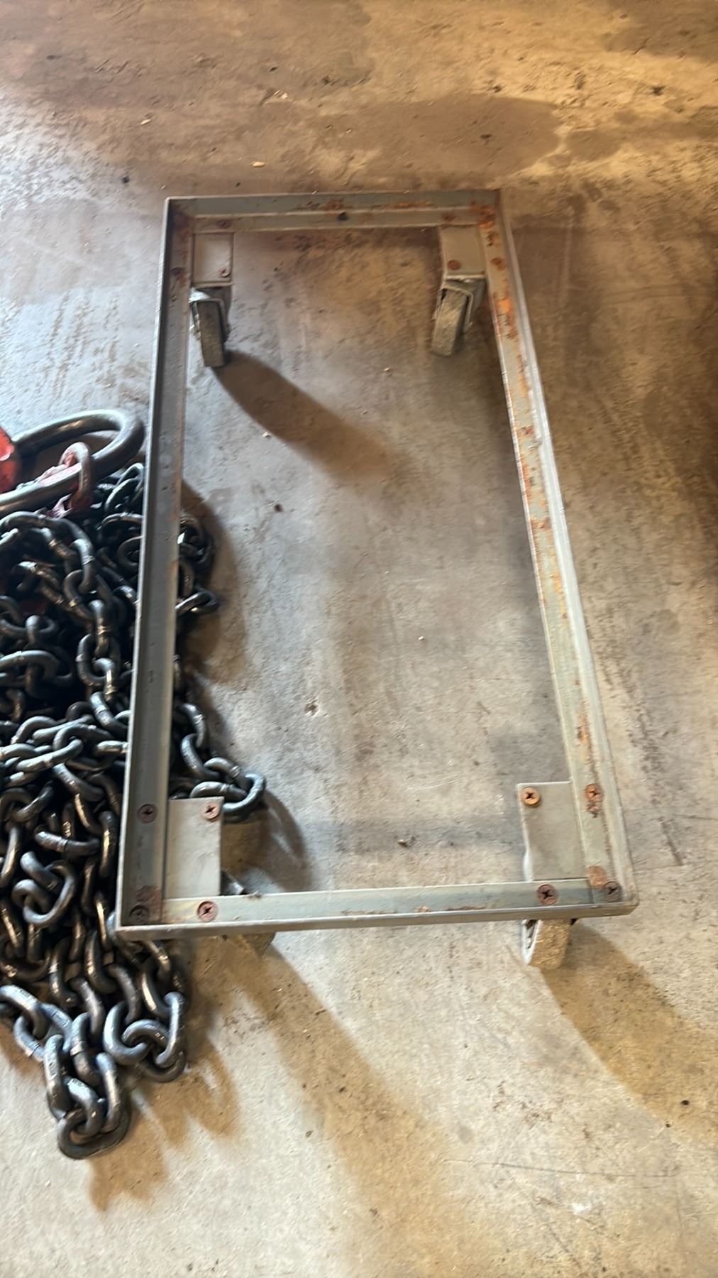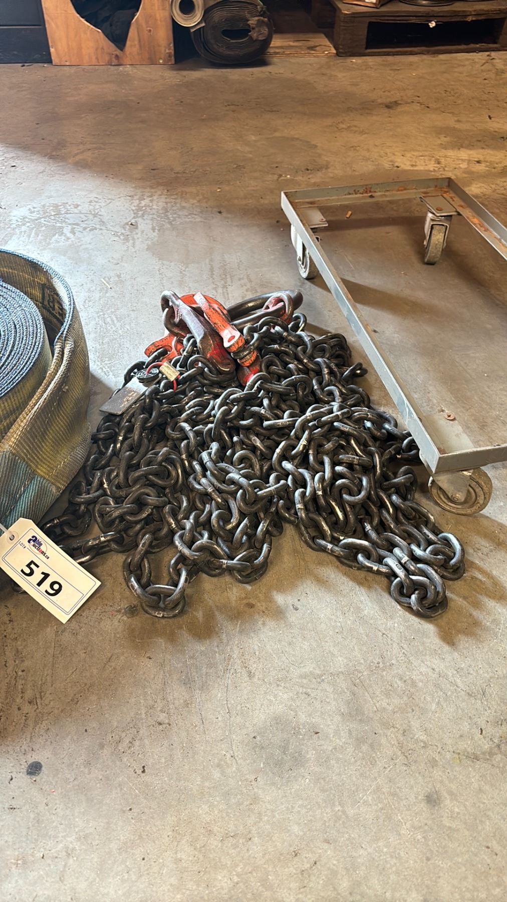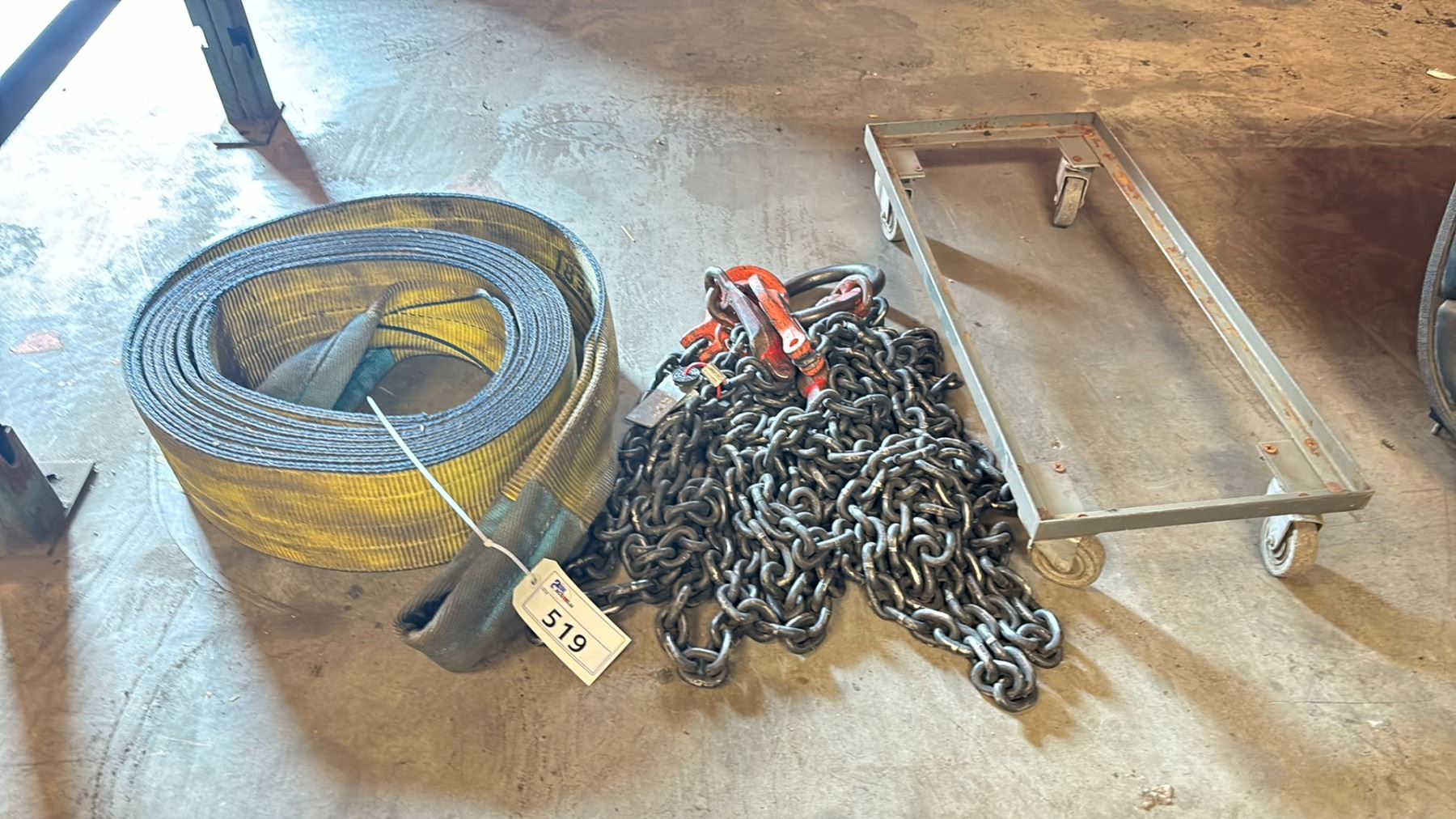 SLING MASTER LARGE CAPACITY RIGGING SLING, A CHAIN SLING & A 4 WHEEL METAL BASE