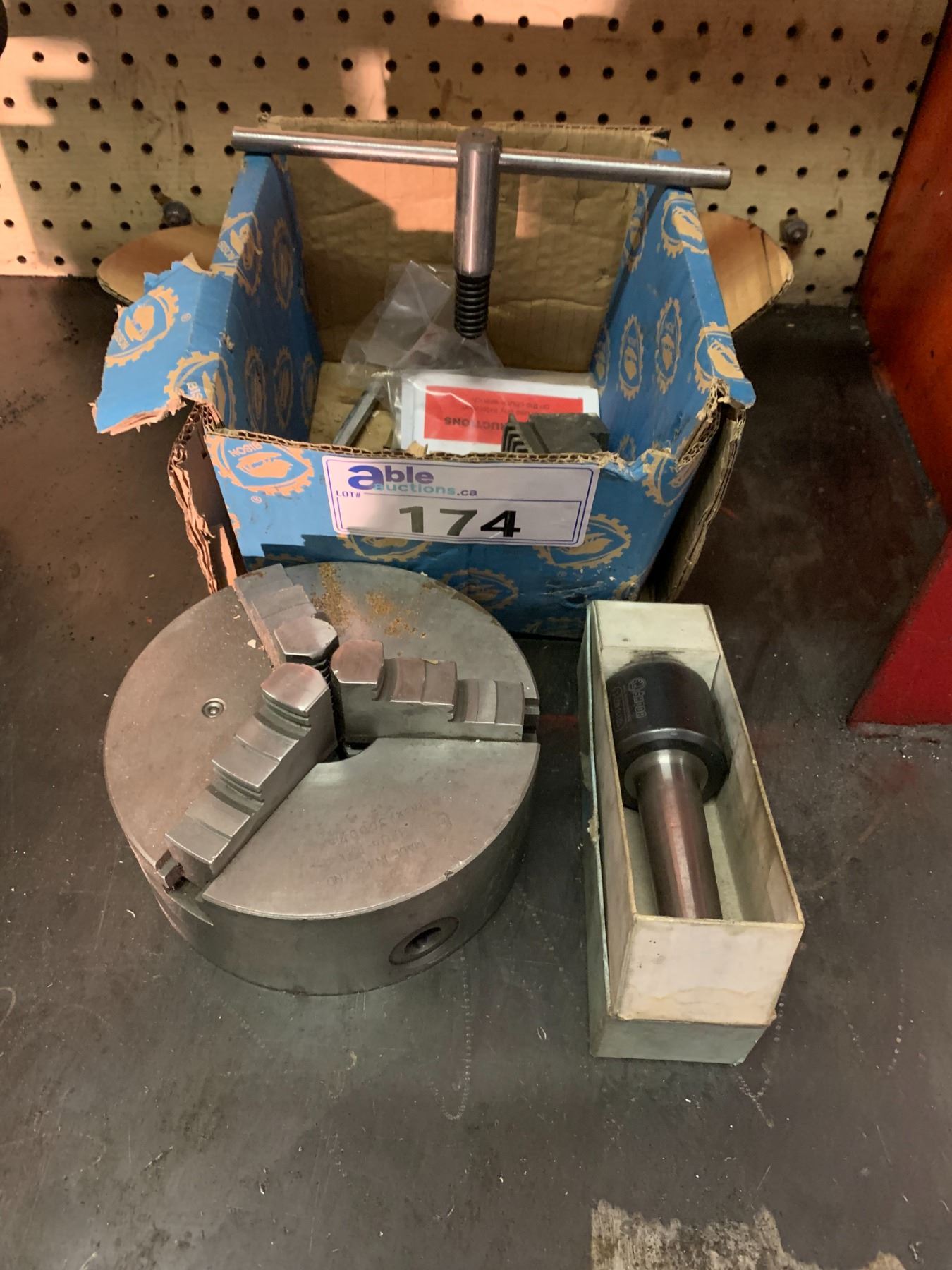 SMALL 3 JAW CHUCK WITH OUTSIDE JAWS AND SMALL LIVE CENTER