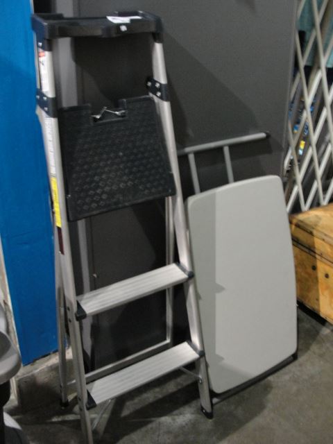 SMALL 4' STEP LADDER AND SMALL FOLDING UTILITY TABLE