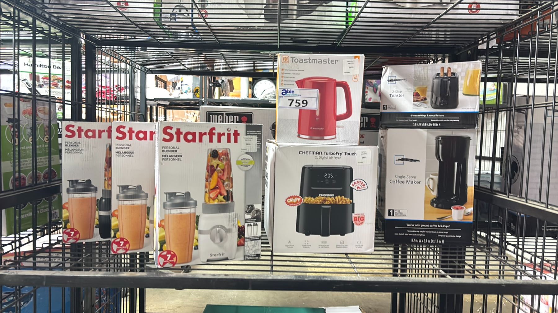 SMALL APPLIANCES INCLUDING 3 STARFRIT PERSONAL BLENDERS, ELECTRIC KETTLE, 2L DIGITAL AIR FRYER, 2 SLICE TOASTER, & A SINGLE SERVE COFFEE MAKER