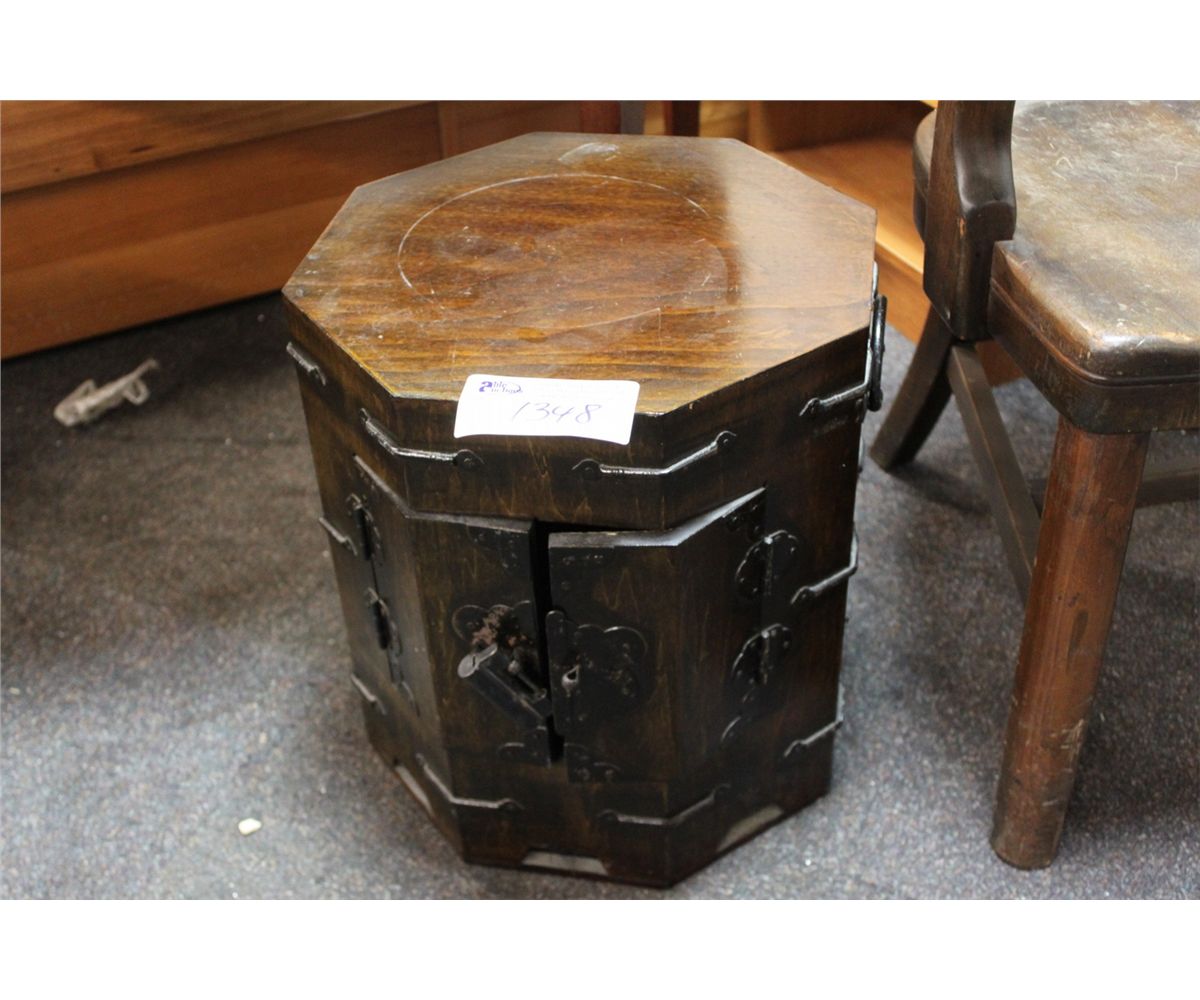 SMALL ASIAN WOOD CHEST WITH METAL LOCK