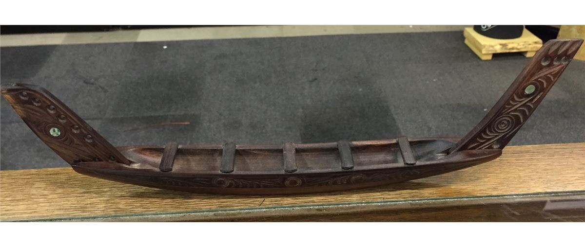 SMALL CANOE CARVING WITH ABALONE INLAY 14.5" L X 3.5" H