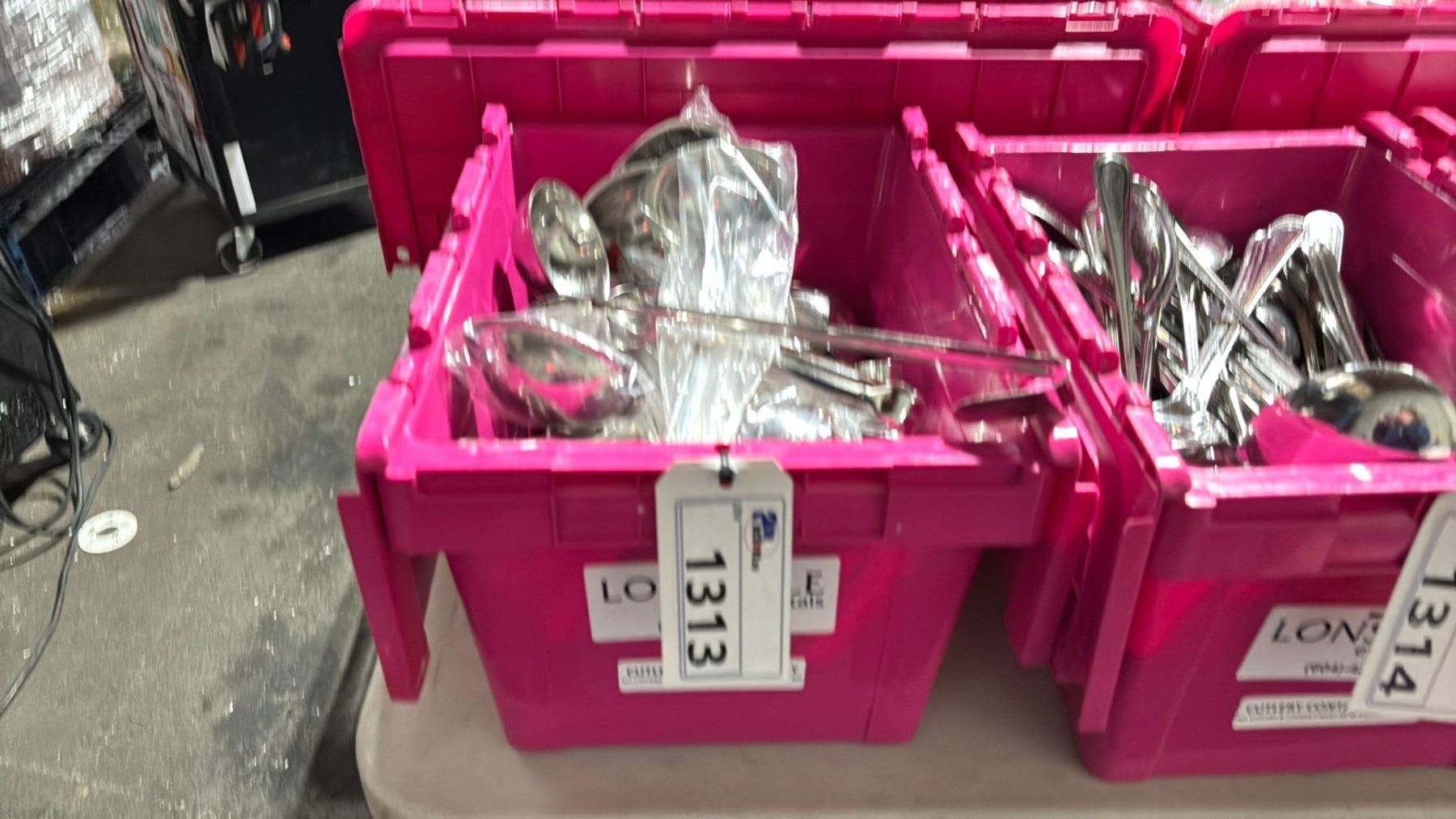 SMALL FOLD TOP BIN OF COMMERCIAL RESTAURANT STAINLESS STEEL SOUP LADLES & SPOONS *BINS INCLUDED*