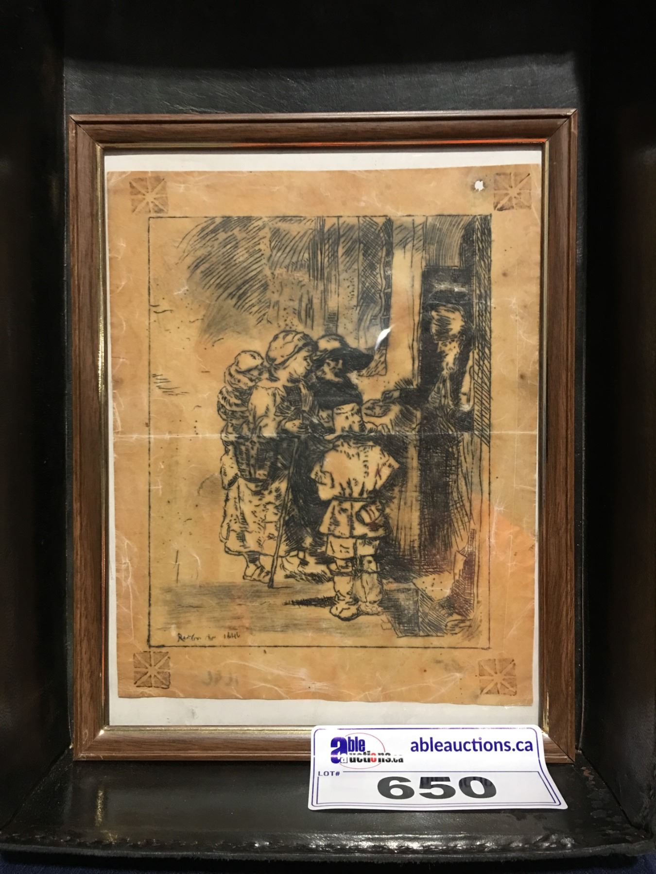 SMALL FRAMED SKETCH ON VELLUM SKIN - SIGNED BOTTOM LEFT CORNER, DATED 1646