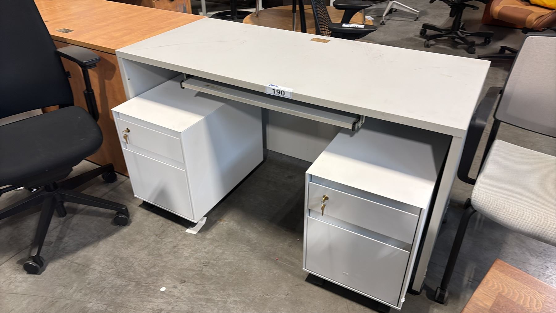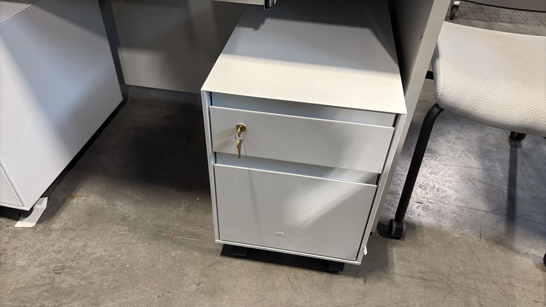 SMALL GREY COMPUTER TABLE AND 2 MOBILE PERSONAL FILE CABINETS