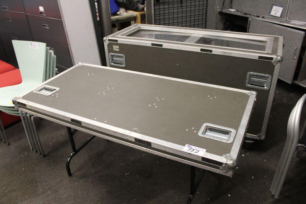 SMALL MOBILE TRADESHOW RETAIL DISPLAY WITH FOLDING TABLE AND GLASS TOP CABINET